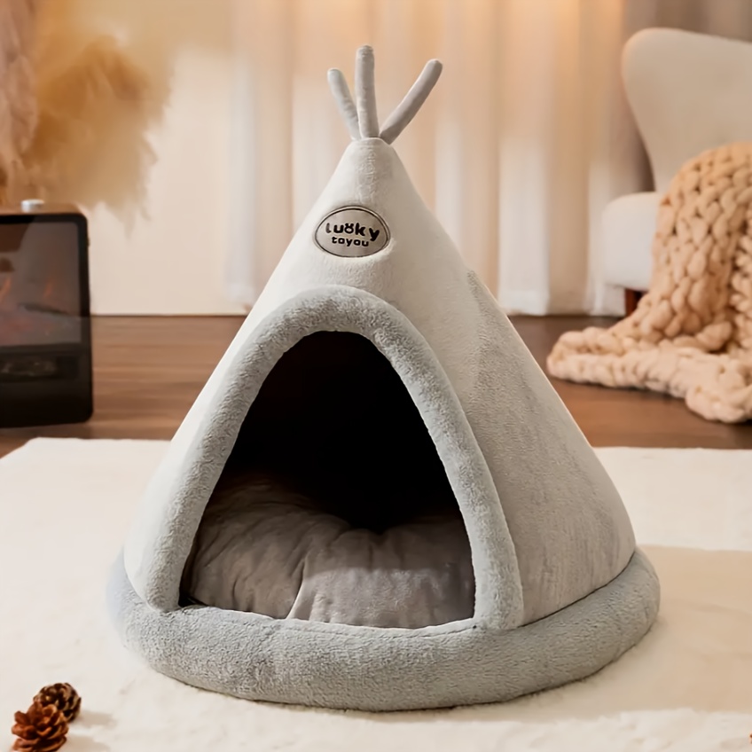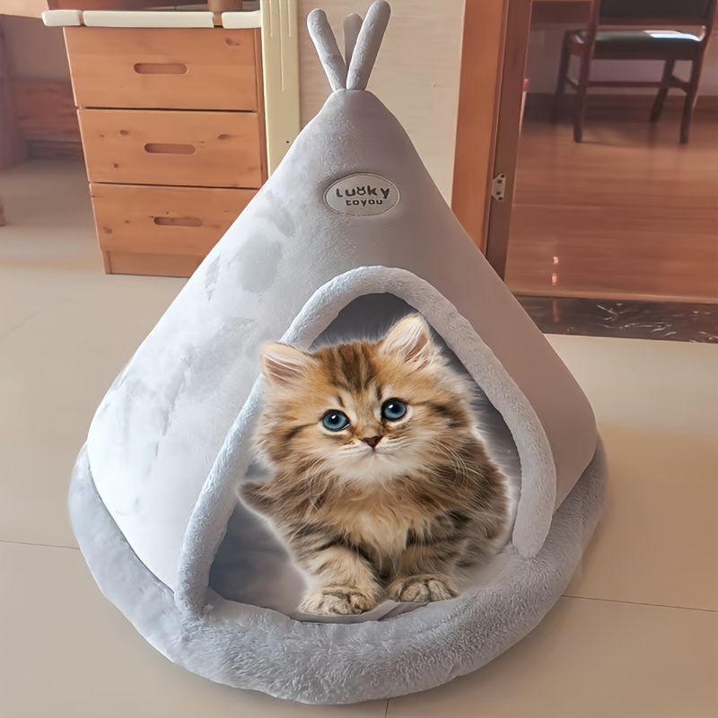 1pc Classic Mongolian Yurt Cat House, Cozy Polyester Fiber Pet Bed with Warm Comfort, Cute Animal Shelter for Indoor Cats, Pre-Assembled, Cute Cat Bed