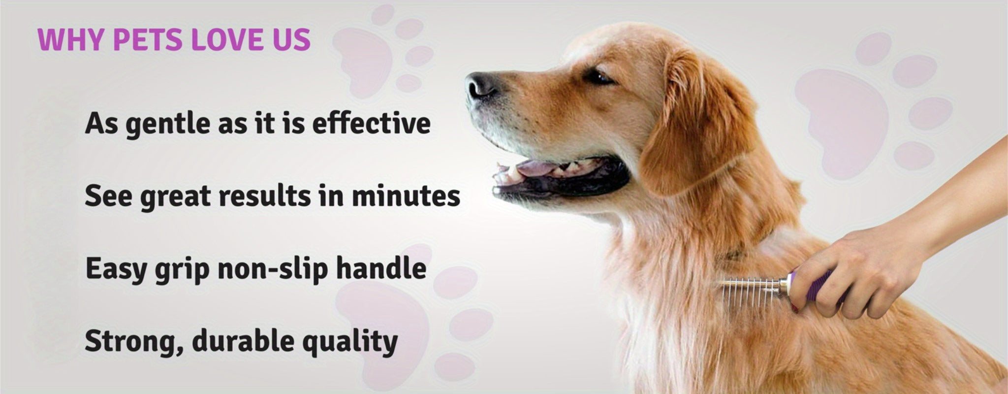 1pc Dematting Fur Rake Comb Brush Tool for Dogs & Cats with Extra Long Stainless Steel Safety Blades for Removing Knots, Mats & Tangles - Pet Grooming Deshedding Brush Tool with Anti-Slip Grip