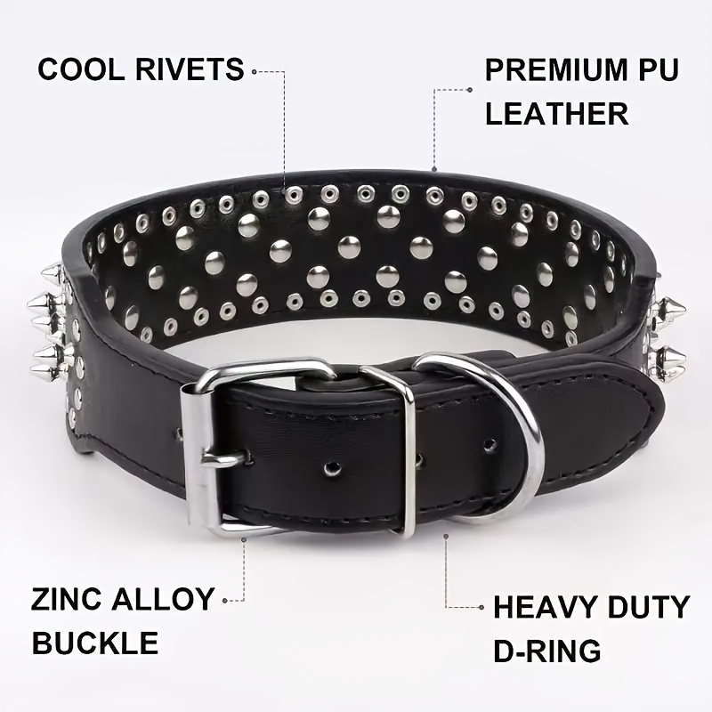 1pc Dog Collar Anti Bite Rivet Pet Collar, Adjustable Dog Collar Adjustable PU Leather Studded Pet Collar