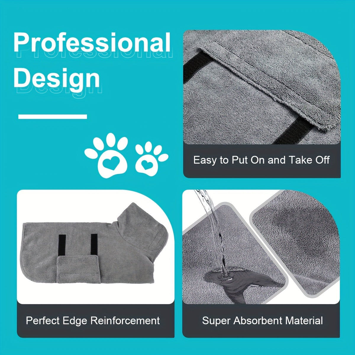 1Pc Plush Dog Bathrobe Towel - Super Absorbent, Quick Drying, Adjustable Collar and Waist, Magic Sticker, Moisture Absorption, Prevents Pet Hair Loss - Ideal for Small, Medium, Large Dogs and Cats
