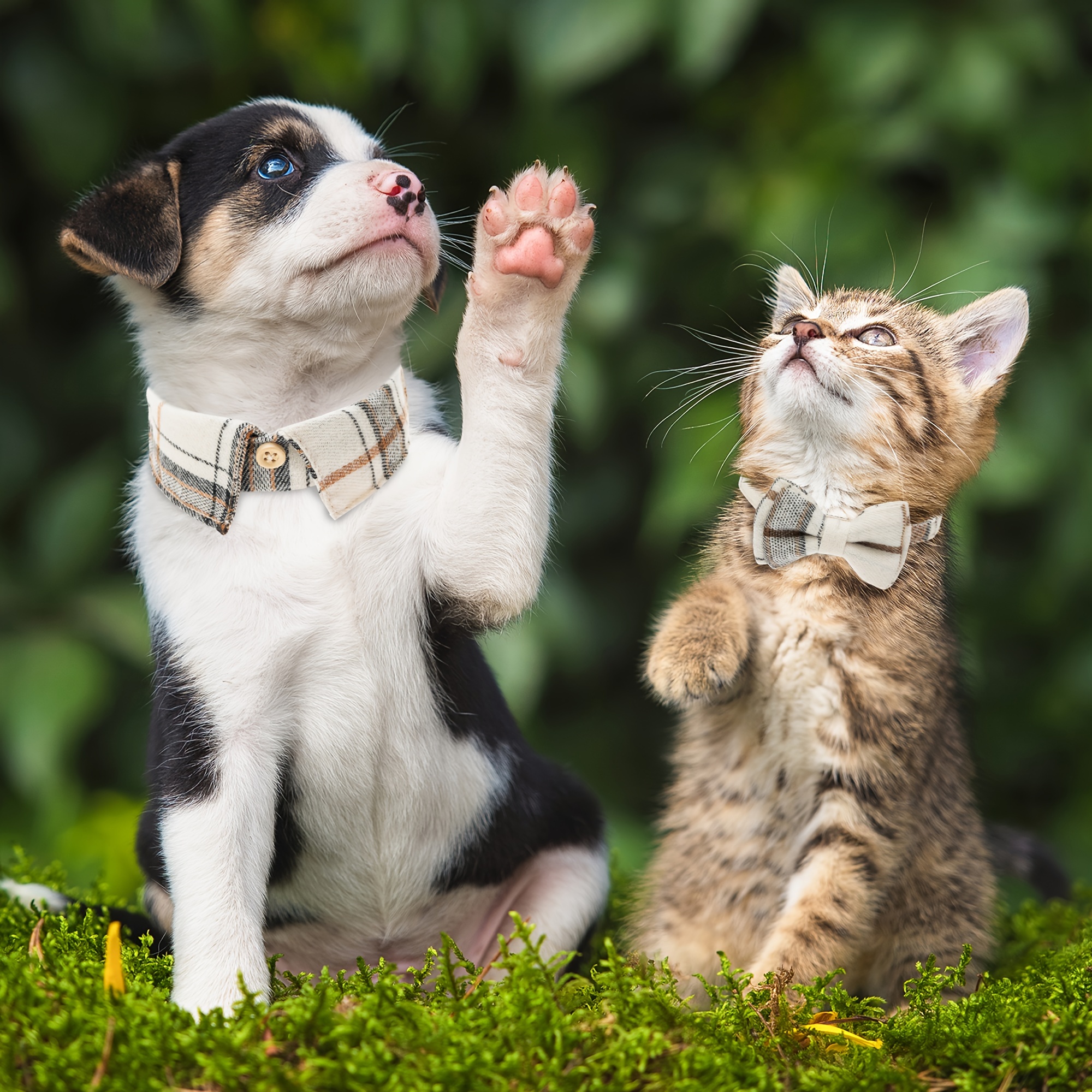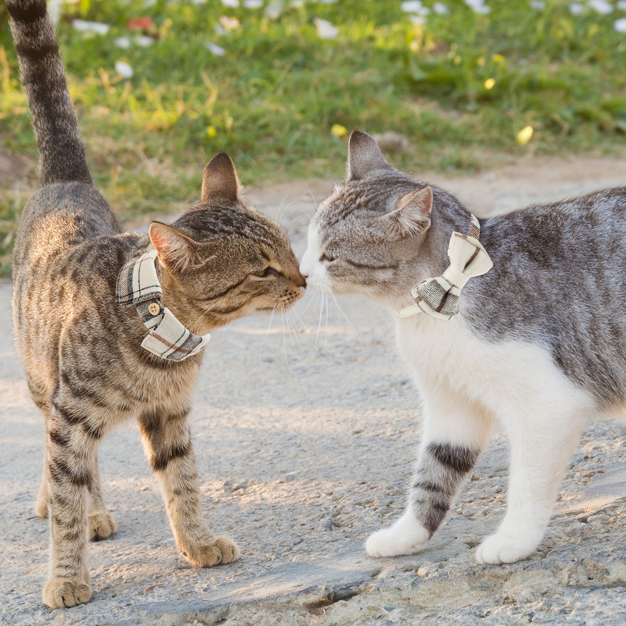 2pcs Plaid Bow Tie Cat Collars with Bells - Adjustable Breakaway Safety Design for Kittens & Puppies, Cute Pet Accessories