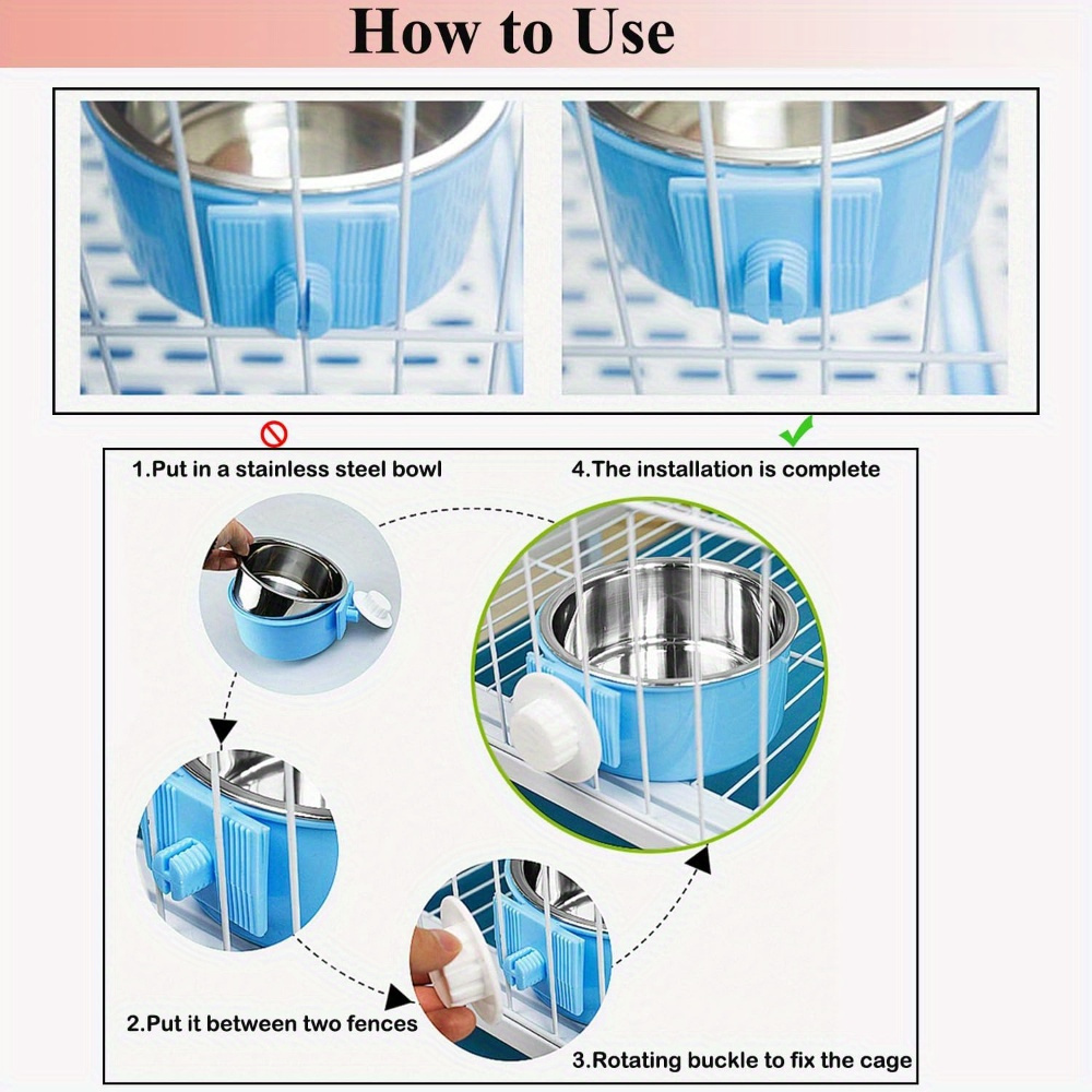 2pcs Stainless Steel Hanging Pet Feeding Bowl, Pet Cage Feeding Bowl, Detachable Pet Nest Hanging Water Feeding Bowl, Easy To Install, High Quality Material, Non-slip and Easy To Clean, Suitable for Puppies, Cats, Rabbits, Bi