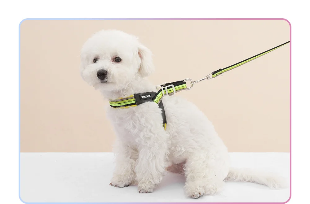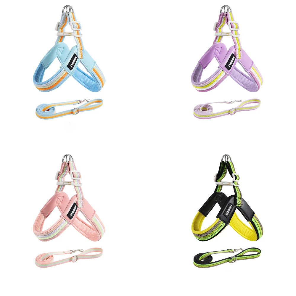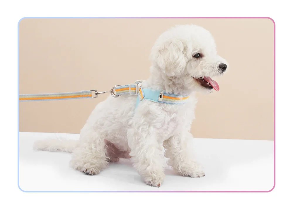 3PCs Pet Dog Harness Leash Set with Bags Adjustable V-shaped Puppy Harness Striped Breathable Dog Chest Strap Dog Accessories