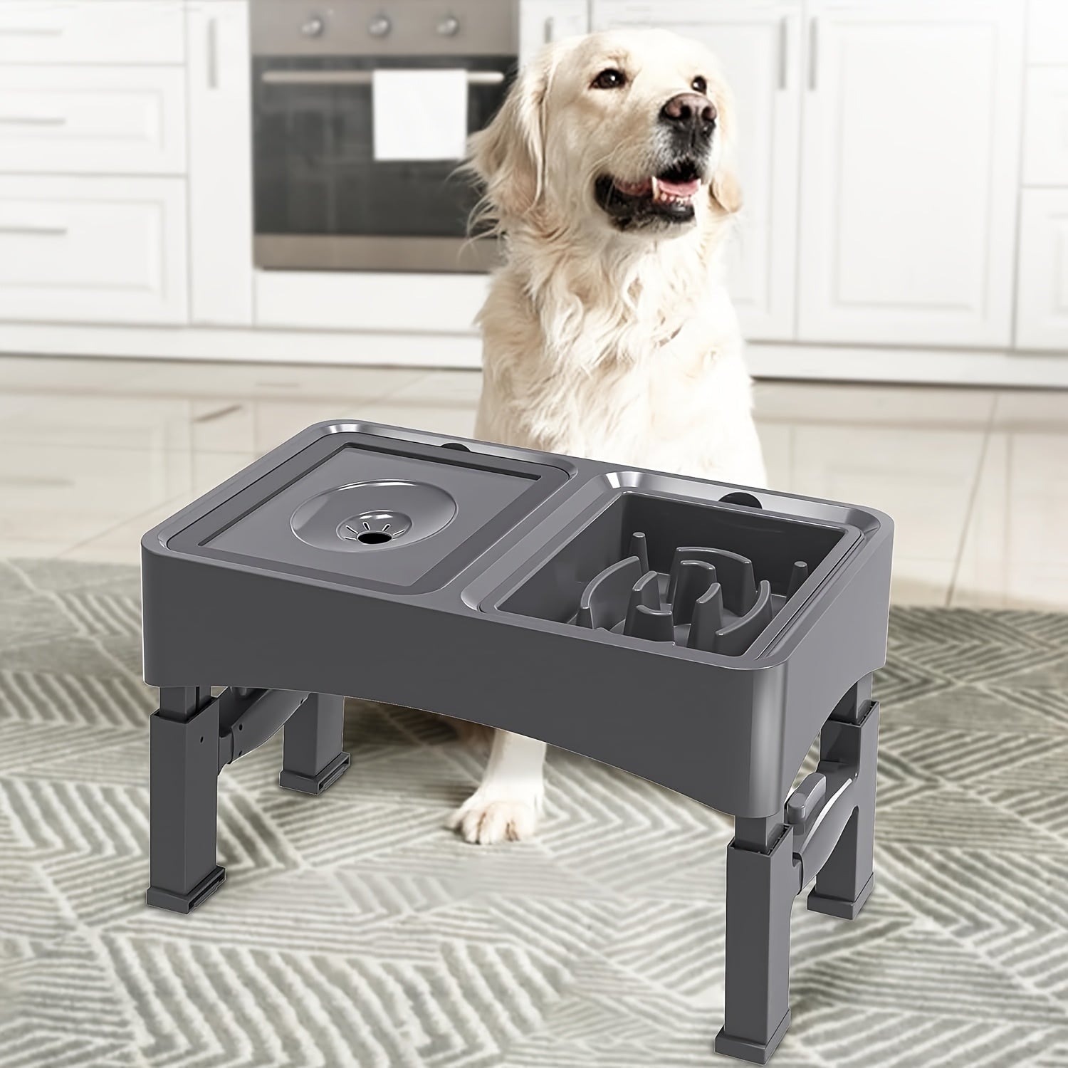 4-Height Adjustable Elevated Pet Feeding Station - Stainless Steel Food Bowls, Slow Feeder & No-Spill Water Bowl Set for Medium & Large Dogs - Neck Protection