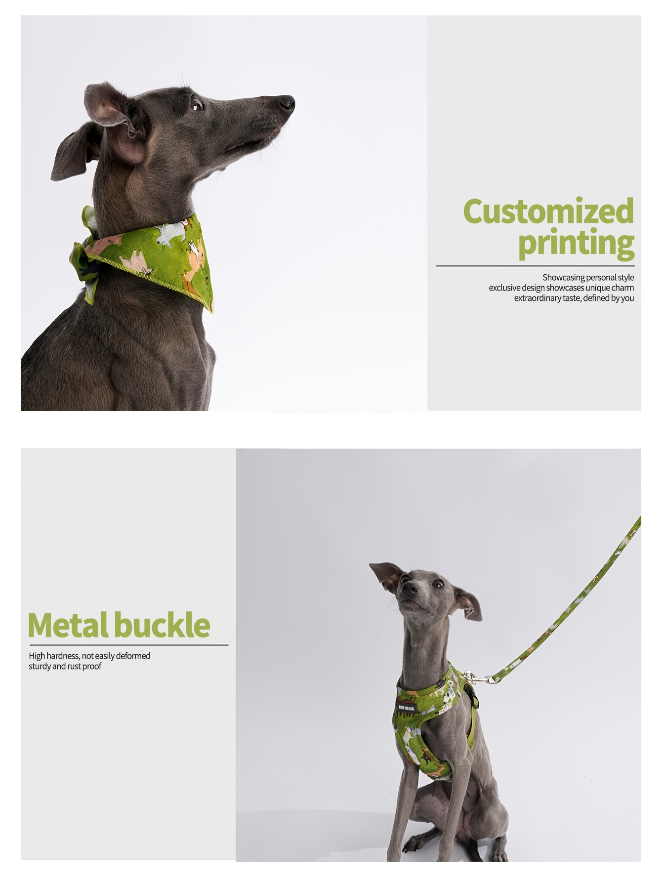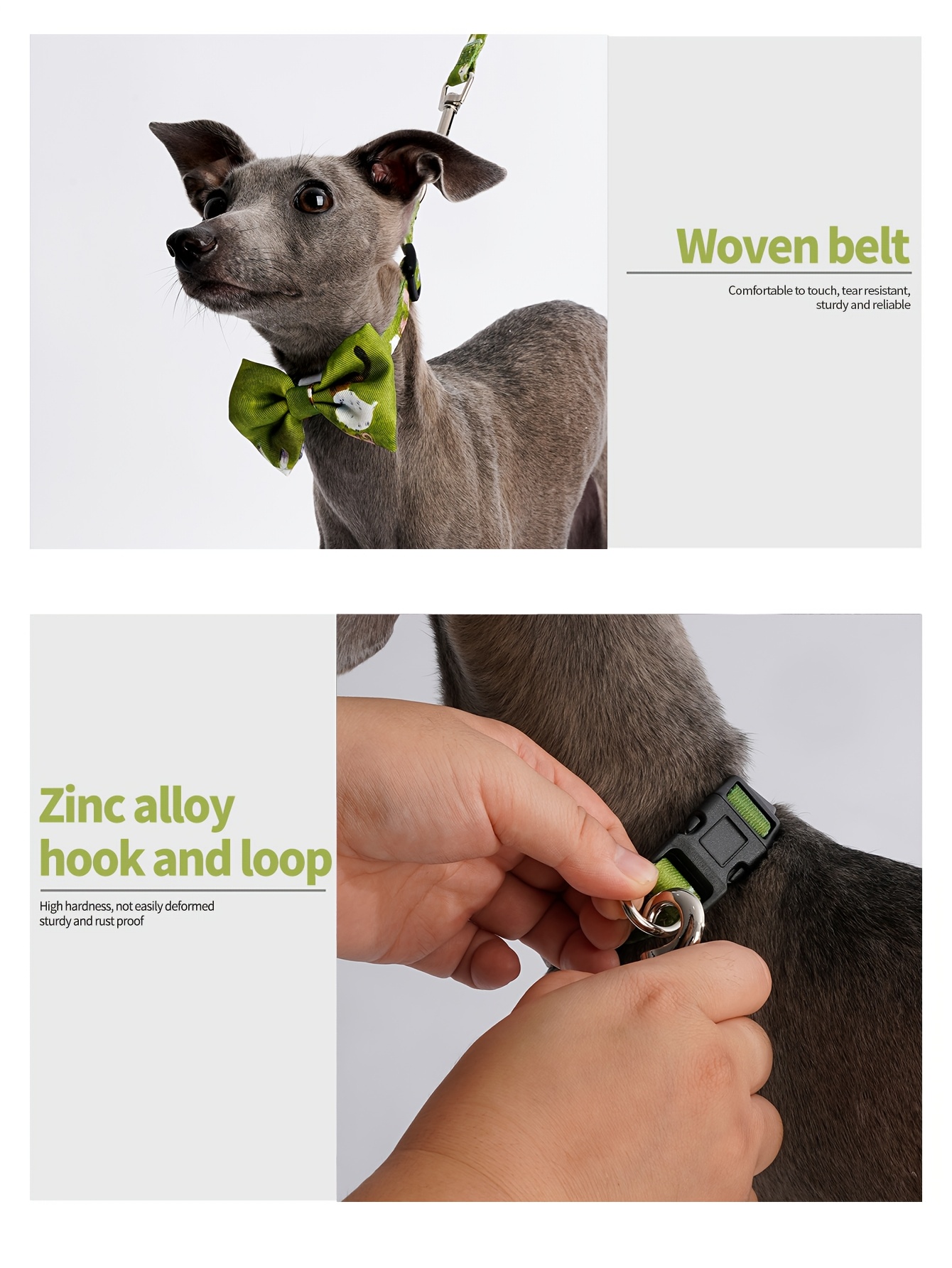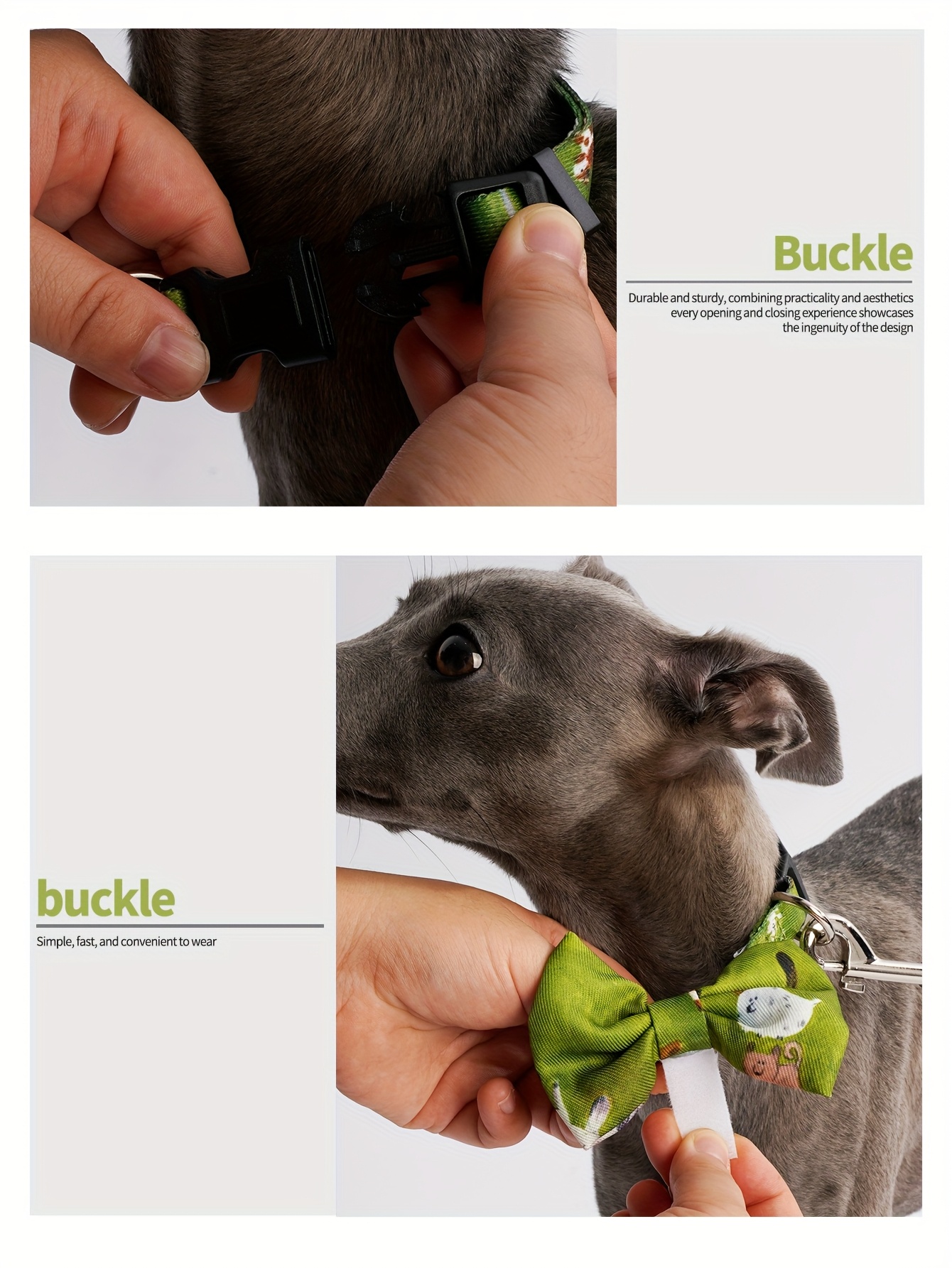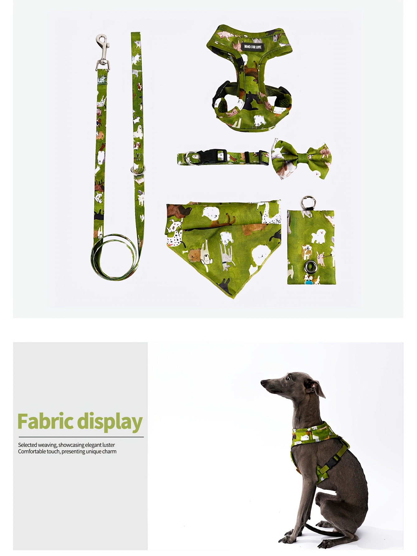 6pcs Forest Animal Print Dog Walking Set, Adjustable Pet Harness, 4ft Leash, Collar, Bowtie, Bandana, and Waste Bag Dispenser for Small to Large Dogs, Polyester Fiber, Without Battery