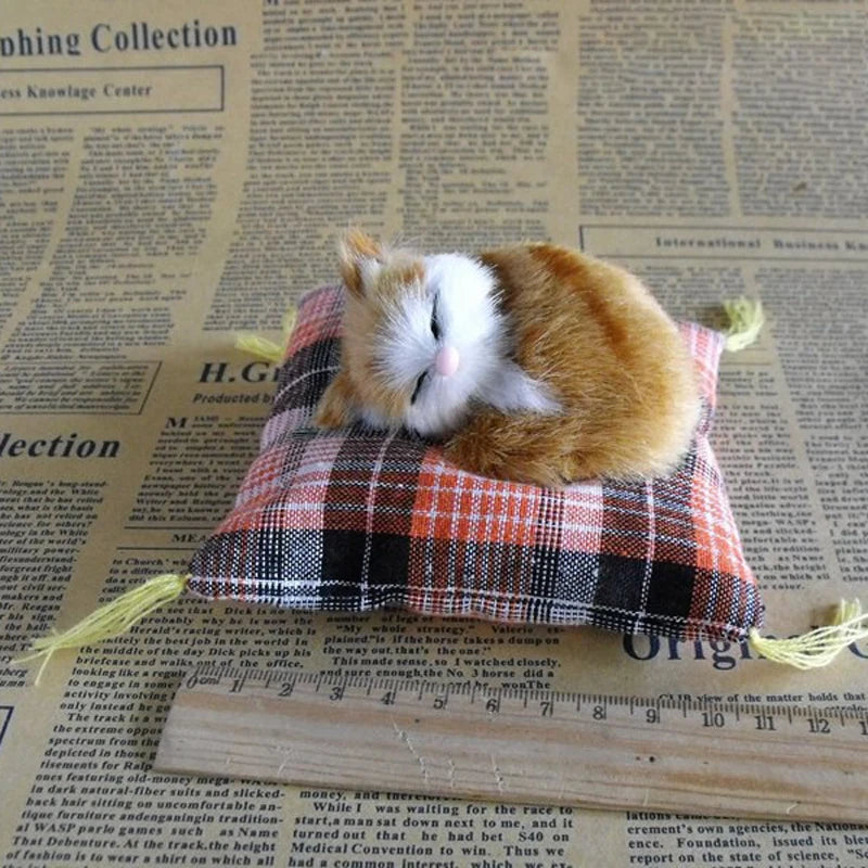 Mini gatos artificiales durmiendo sobre una almohadilla de tela, simulación de peluche, adornos de muñecas de gatos acostados, regalos para niños, decoración del hogar, manualidades.