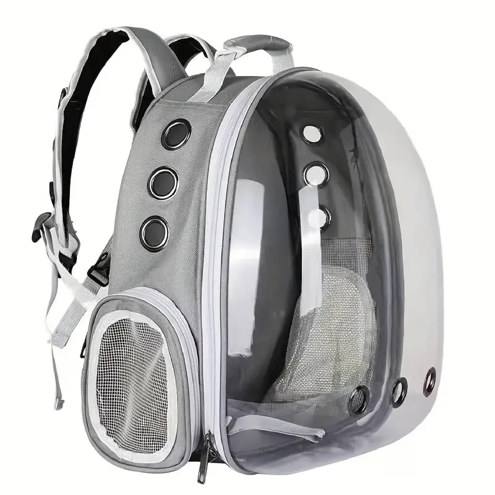 This product is a portable and breathable cat backpack designed for outdoor use. It features a transparent space capsule-like design that allows your cat to comfortably observe the surroundings while feeling safe and secure. The backpack is equipped with a harness for added security, ensuring your cat stays in place during travel. It also includes breathable mesh panels or ventilation holes to maintain good airflow, preventing your pet from overheating. The adjustable shoulder straps make it easy for you to carry, making it an ideal choice for walks, trips, or visits to the vet.