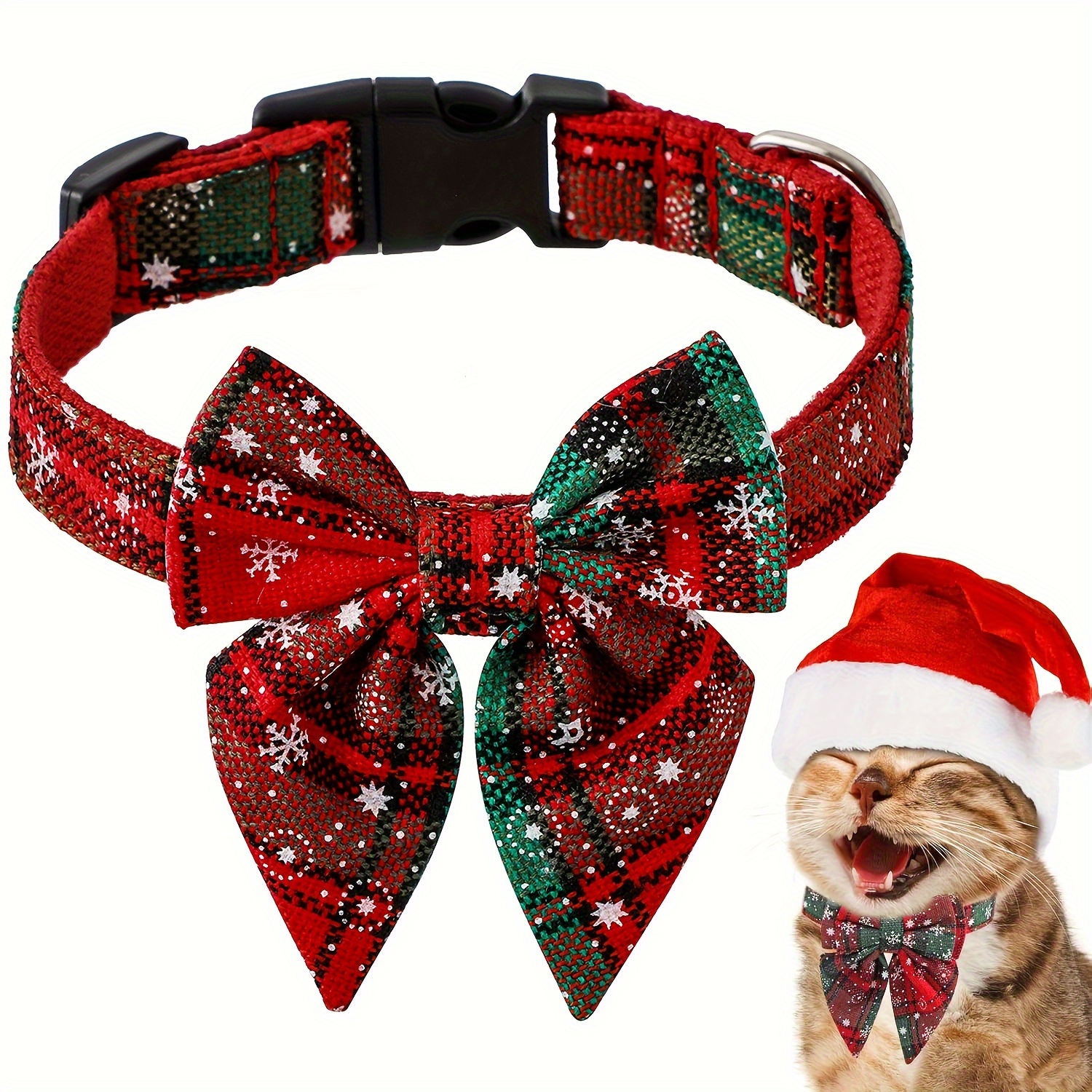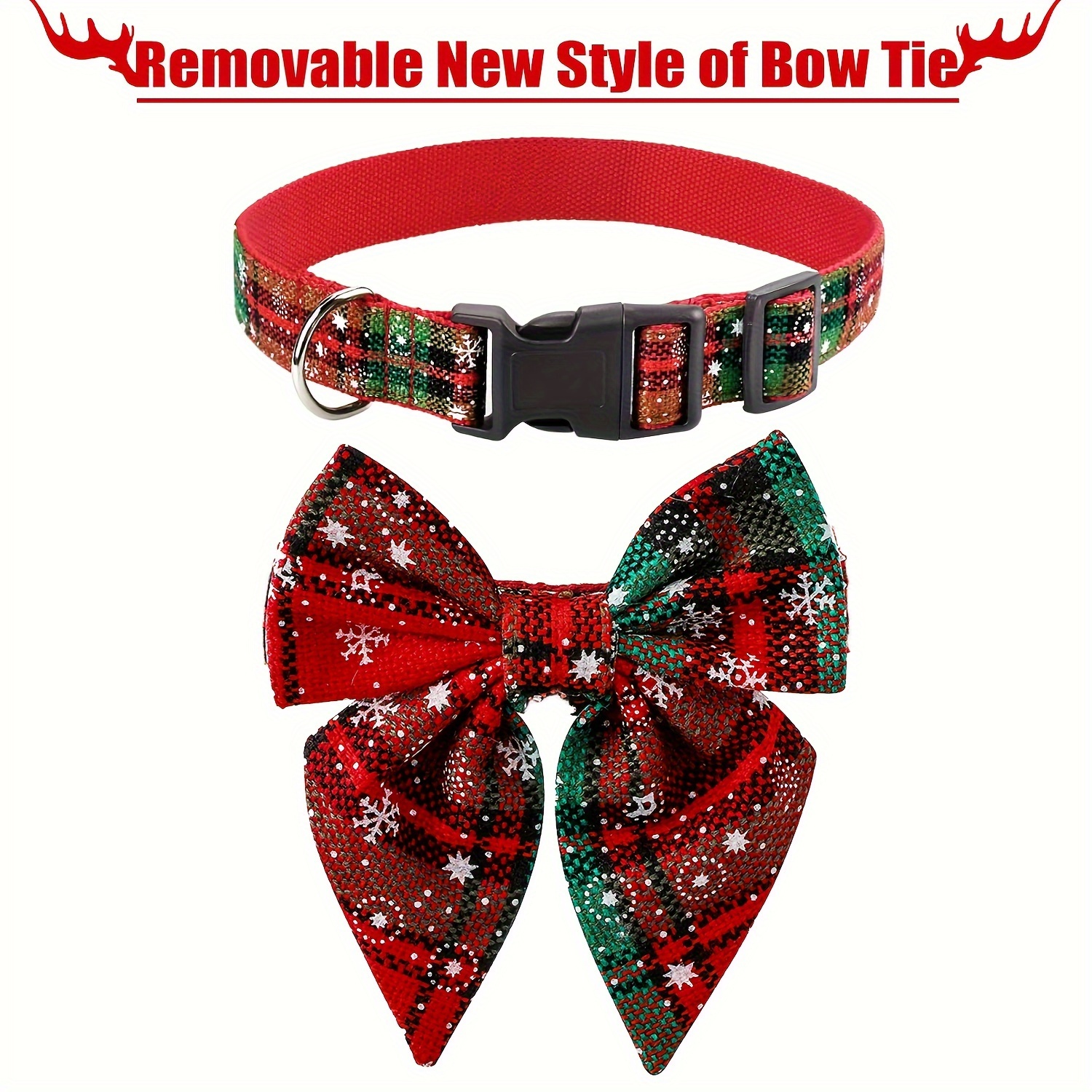 Christmas Plaid Dog Collar with Detachable Bowtie, Adjustable Pet Collar for Cats and Dogs, Durable Polyamide Material with Press Buckle and D-Ring, Perfect for Holiday Parties, Birthdays, and Daily Wear - Red (S/M/L)