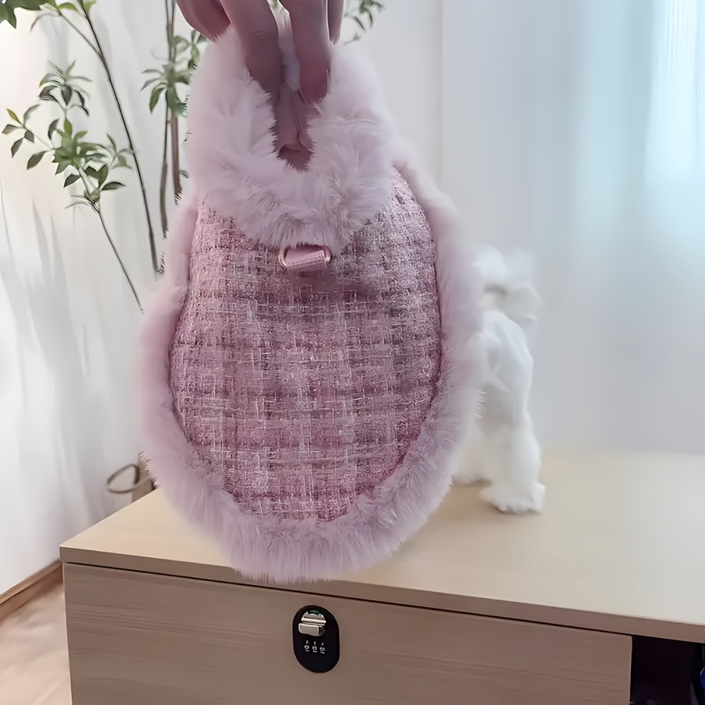 Cozy Pink Plush Dog Sweater with Adjustable Harness and Leash Set - Knit Winter Coat for Small to Medium Breeds, Fashionable Pet Apparel for Autumn & Winter Comfort