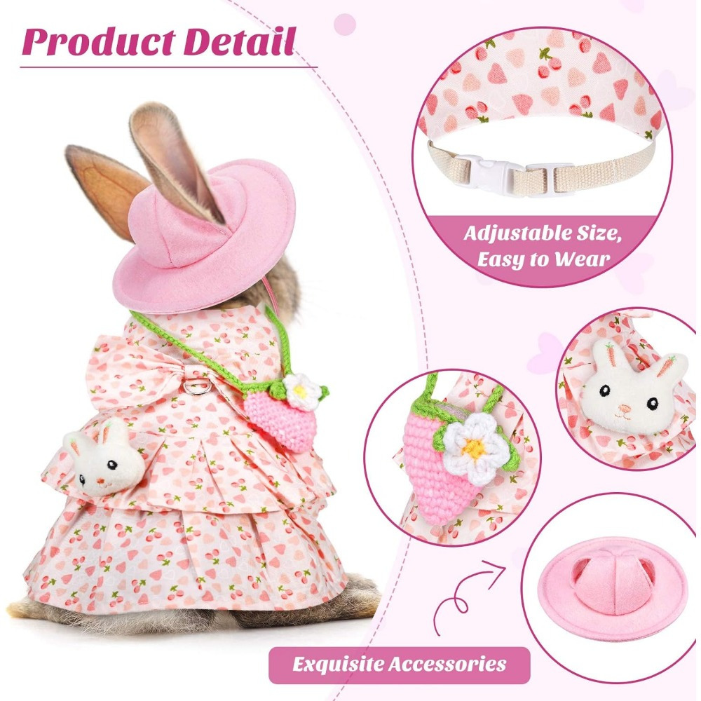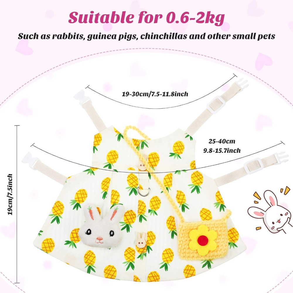 The small animal harness and leash sets are crafted from gentle and cozy materials like fabric and leather, ensuring safety and durability. They offer a soft and snug fit, instilling confidence in pet owners. Featuring a lightweight design and adjustable sizing, this bunny dress set is perfect for small pets, promising long-lasting cuteness.