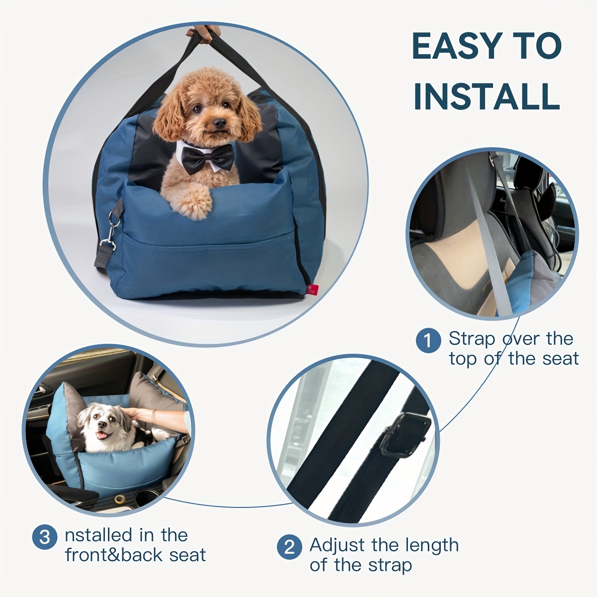 Dog Carrier Car Seat for Dogs & Cats - Portable Warm Travel Pet Bed with Safety Hook & Buckle, Handheld/Shoulder Strap, Fits Car Front/Back Seat, Suitable for Fall/Winter, Christmas Gift