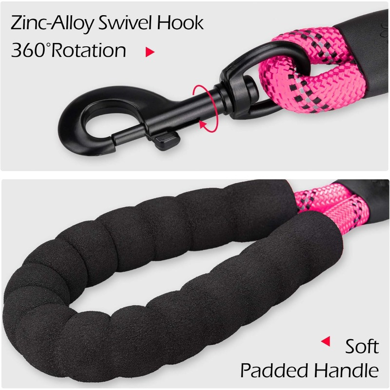 Both the harness and the leash feature reflective trim. The reflective outer material enhances safety during evening or nighttime walks when car headlights are present. The reflective fabric is also ideal for taking your dog out for a bathroom break before bedtime, ensuring your safety in a bustling urban area. 360° ROTATING CLASP: There's nothing more frustrating than a leash that gets twisted! This sturdy metal swivel clasp stops the leash from twisting and tangling. The heavy-duty zinc-alloy clasp ensures our training leashes are durable.