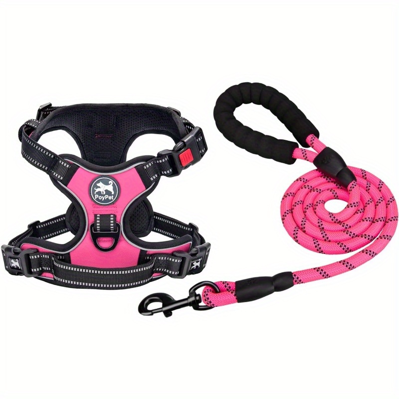 Dog Harness and Leash Combo Escape Proof No Pull Vest Harness with 5 Feet Leash Reflective Adjustable Soft Padded Pet Harness with Handle for Small to Large Dogs Pink M
