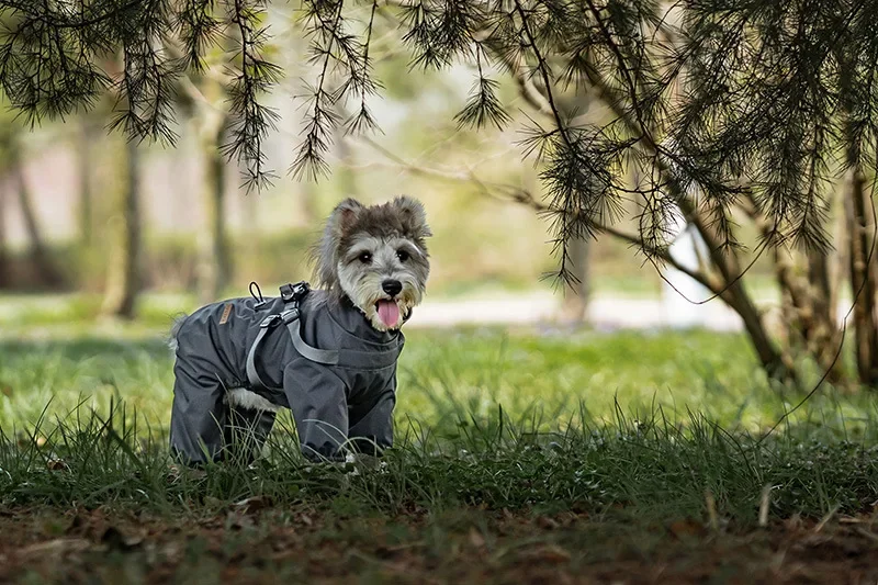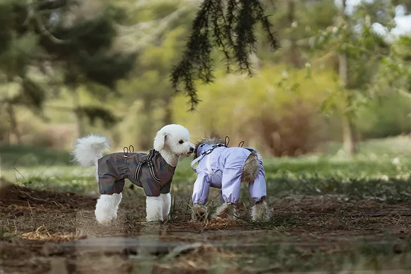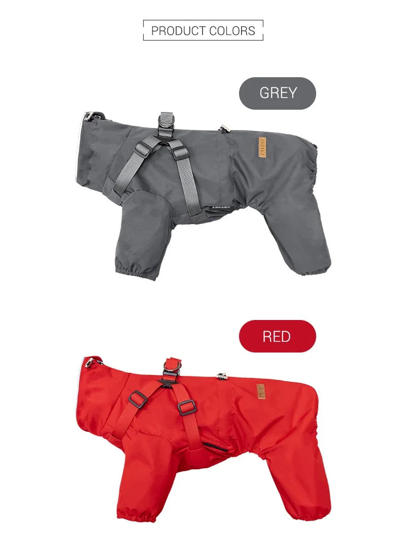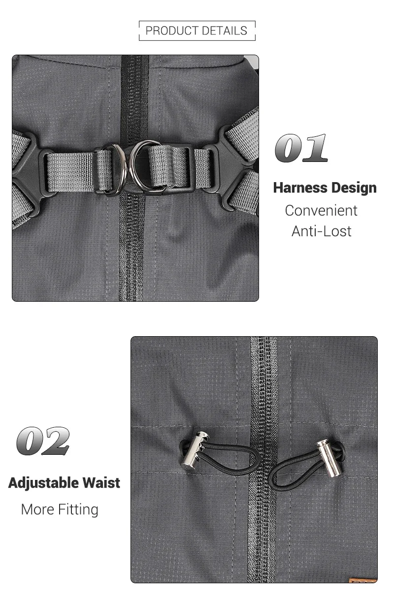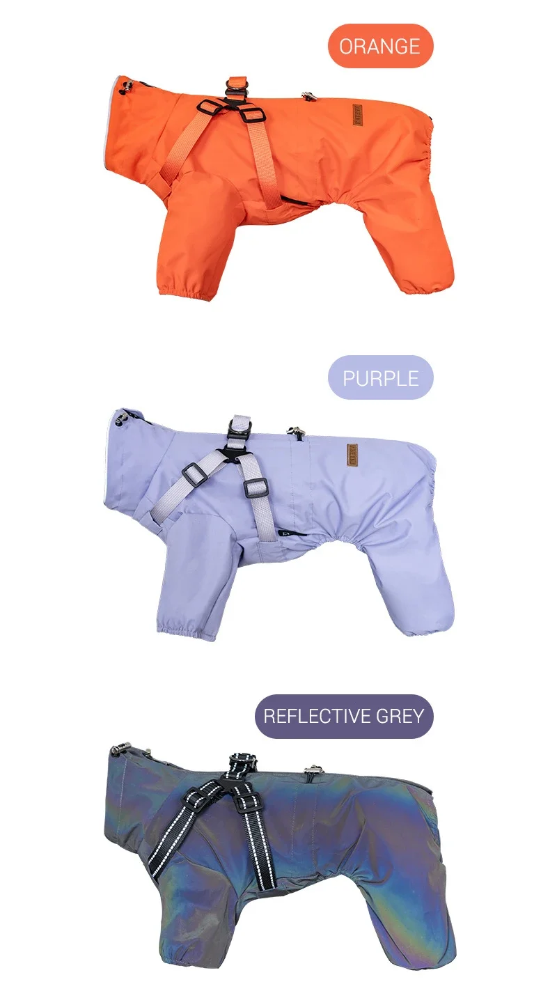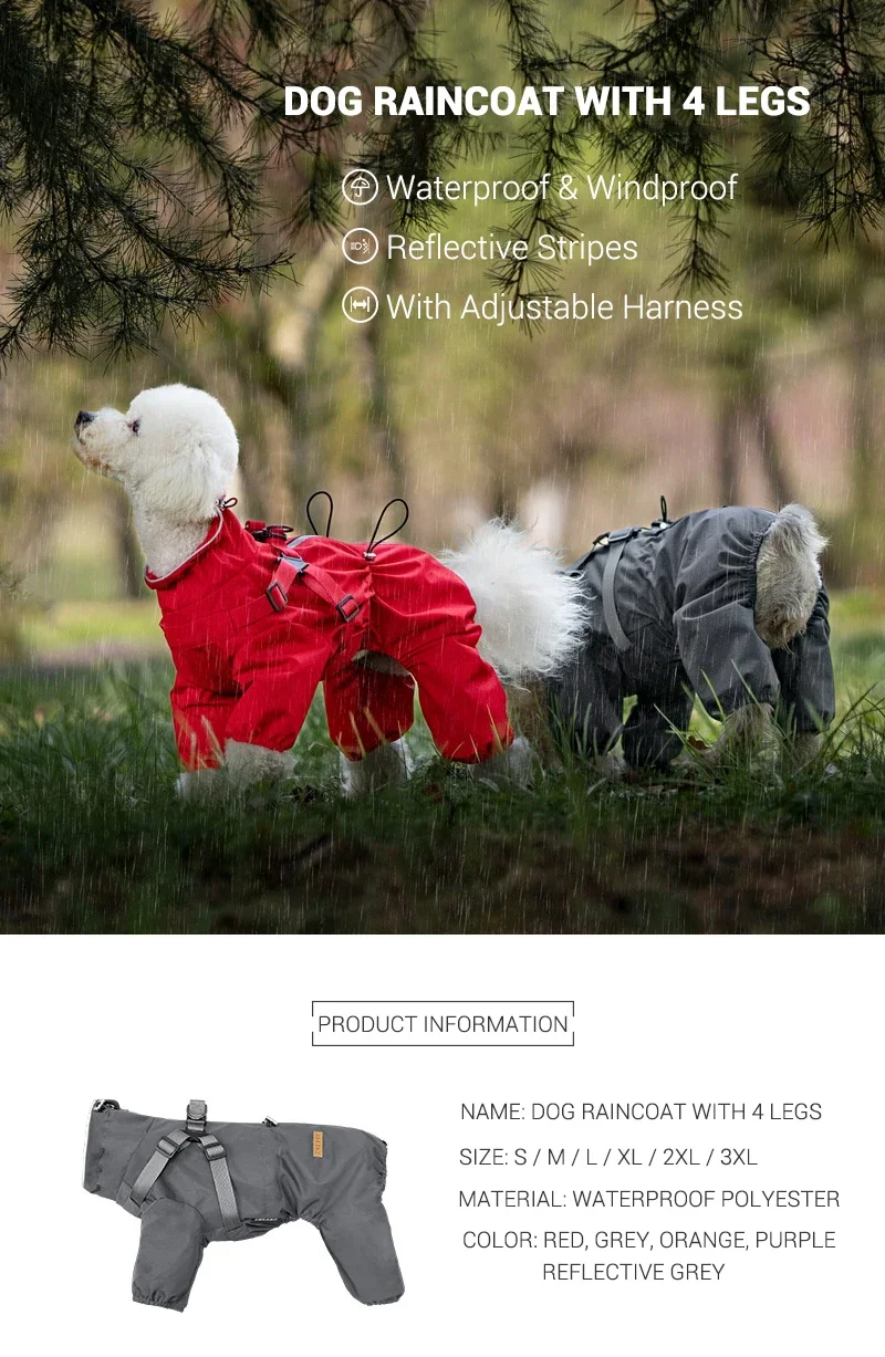 Dog Raincoat with Harness Waterproof Pet Rain Jacket for Small Dogs Adjustable Reflective Dog Rain Overalls with 4 Legs