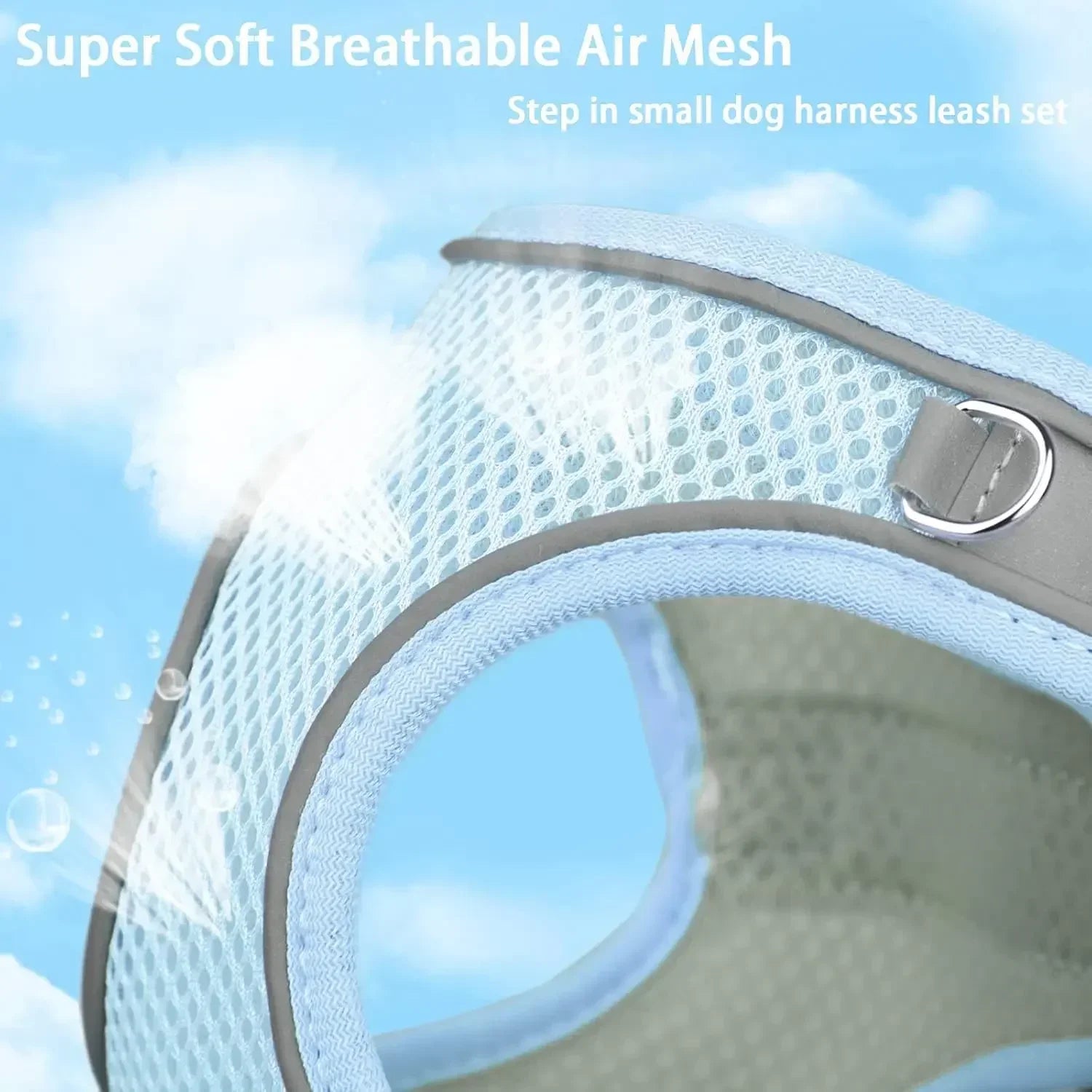 Arnés y correa a prueba de fugas para perros pequeños, gatos, cachorros, chaleco reflectante, correa para caminar, suministros para mascotas.