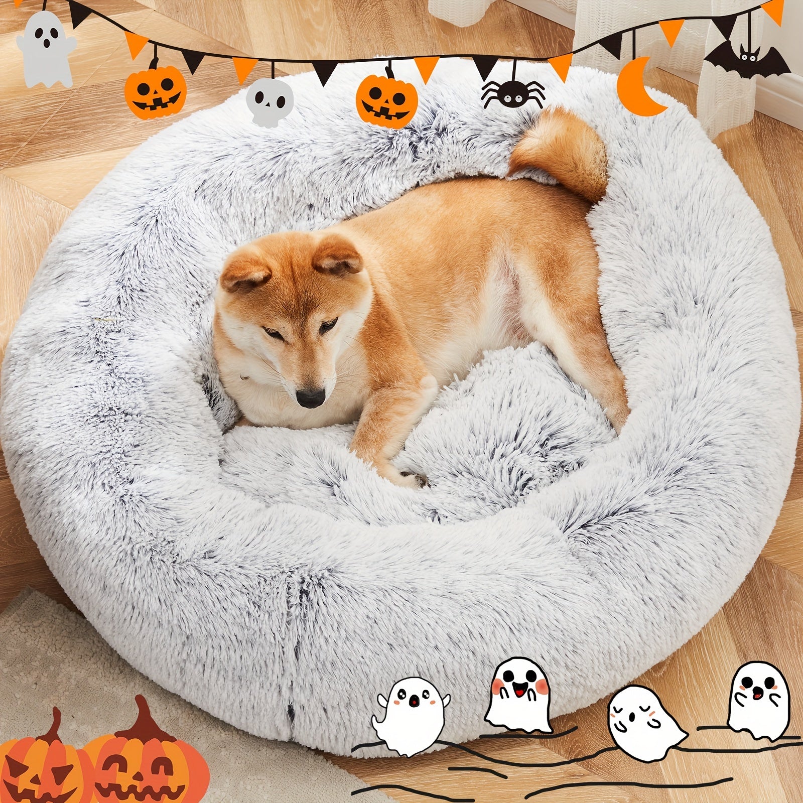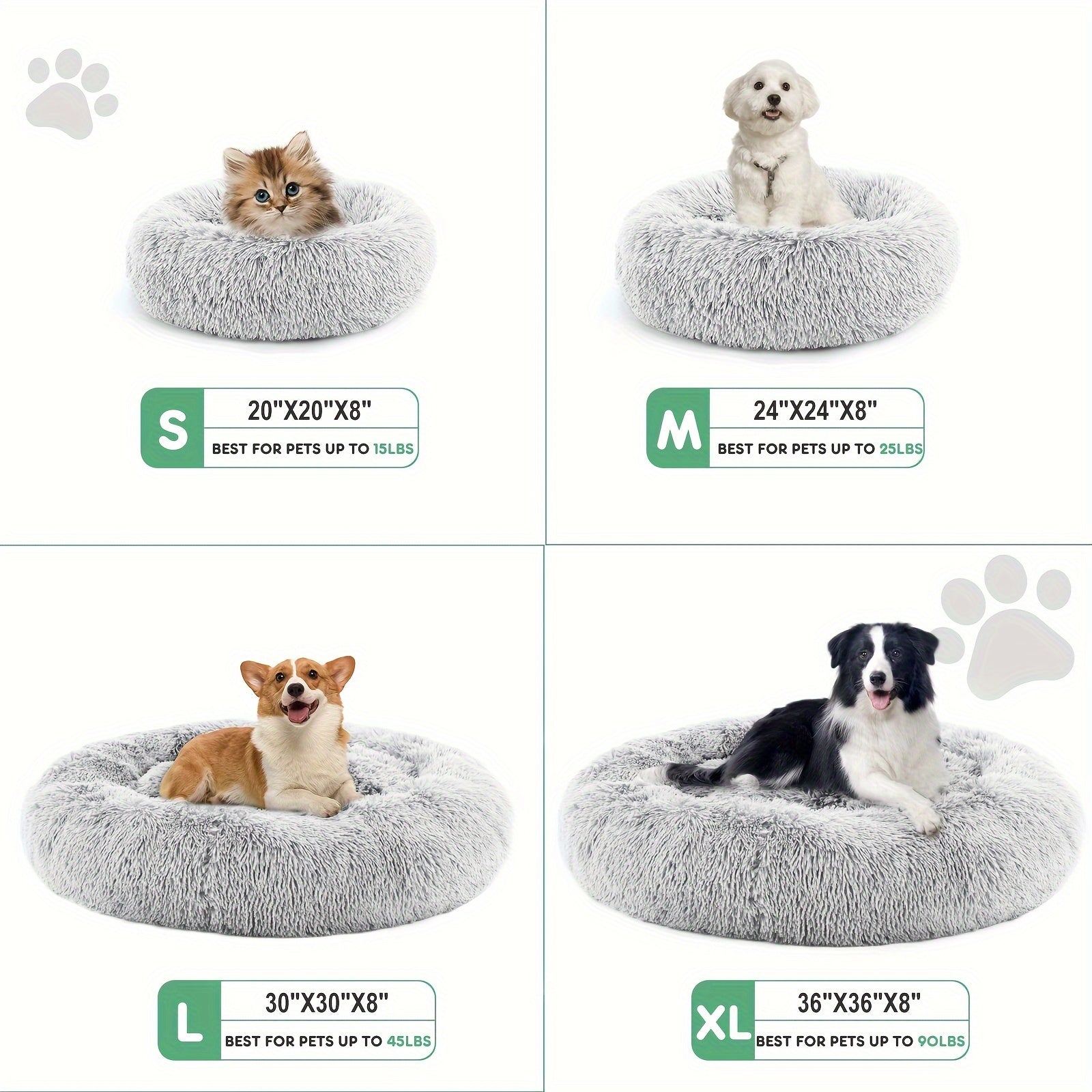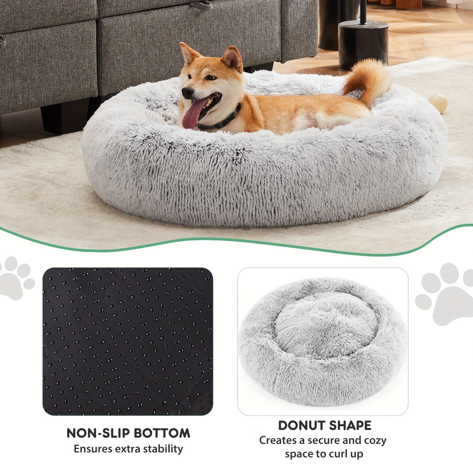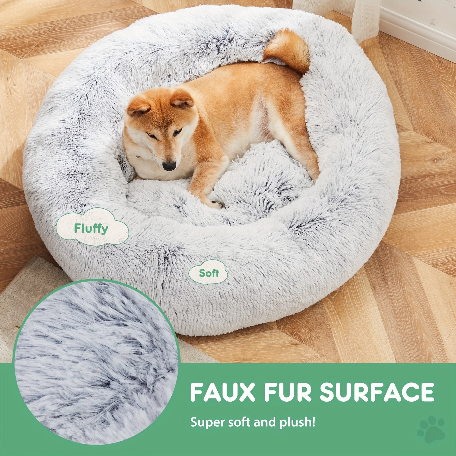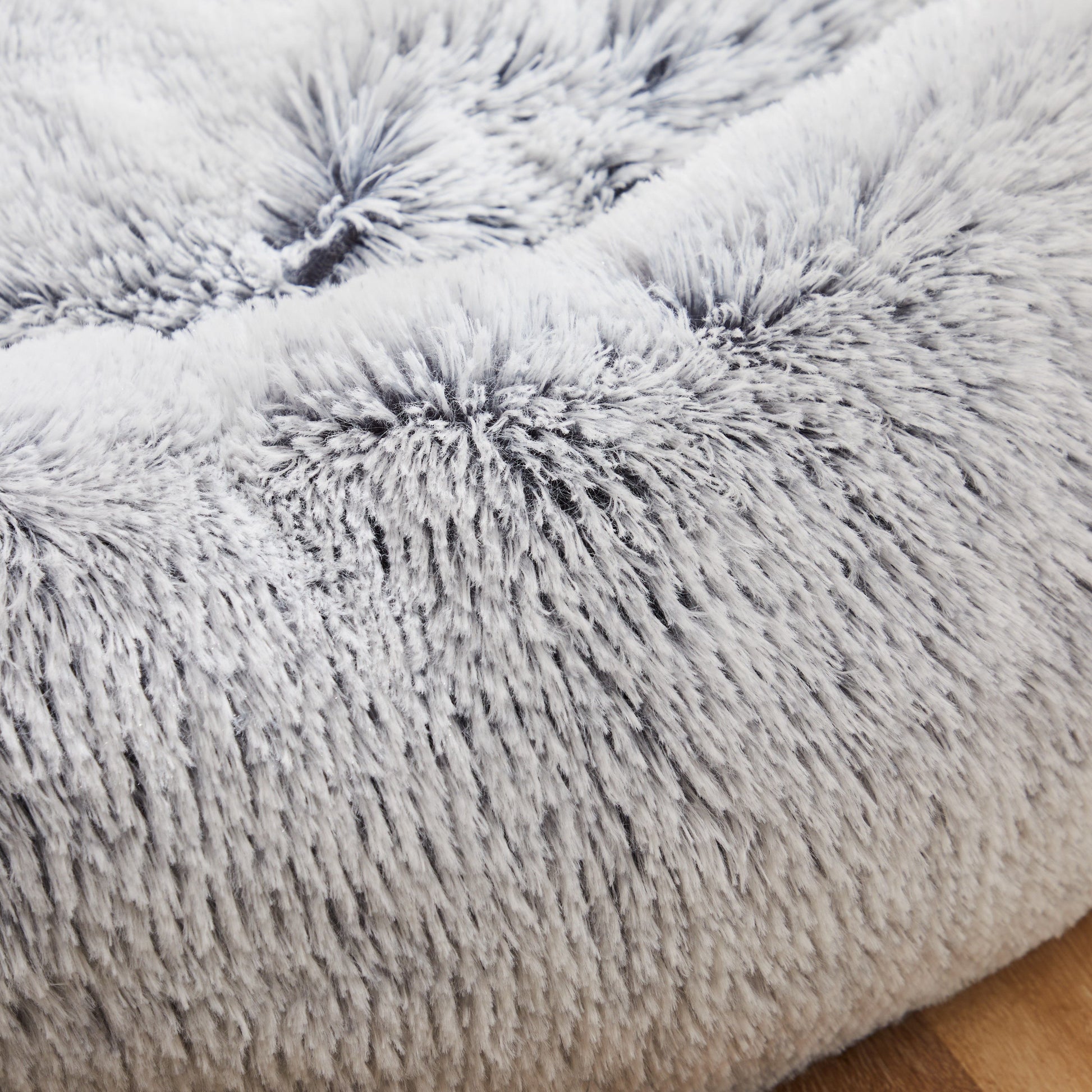 Fluffy Plush Calming Pet Bed For Dogs And Cats - Washable Anti-Slip Round Bed For Pets - Grey Color