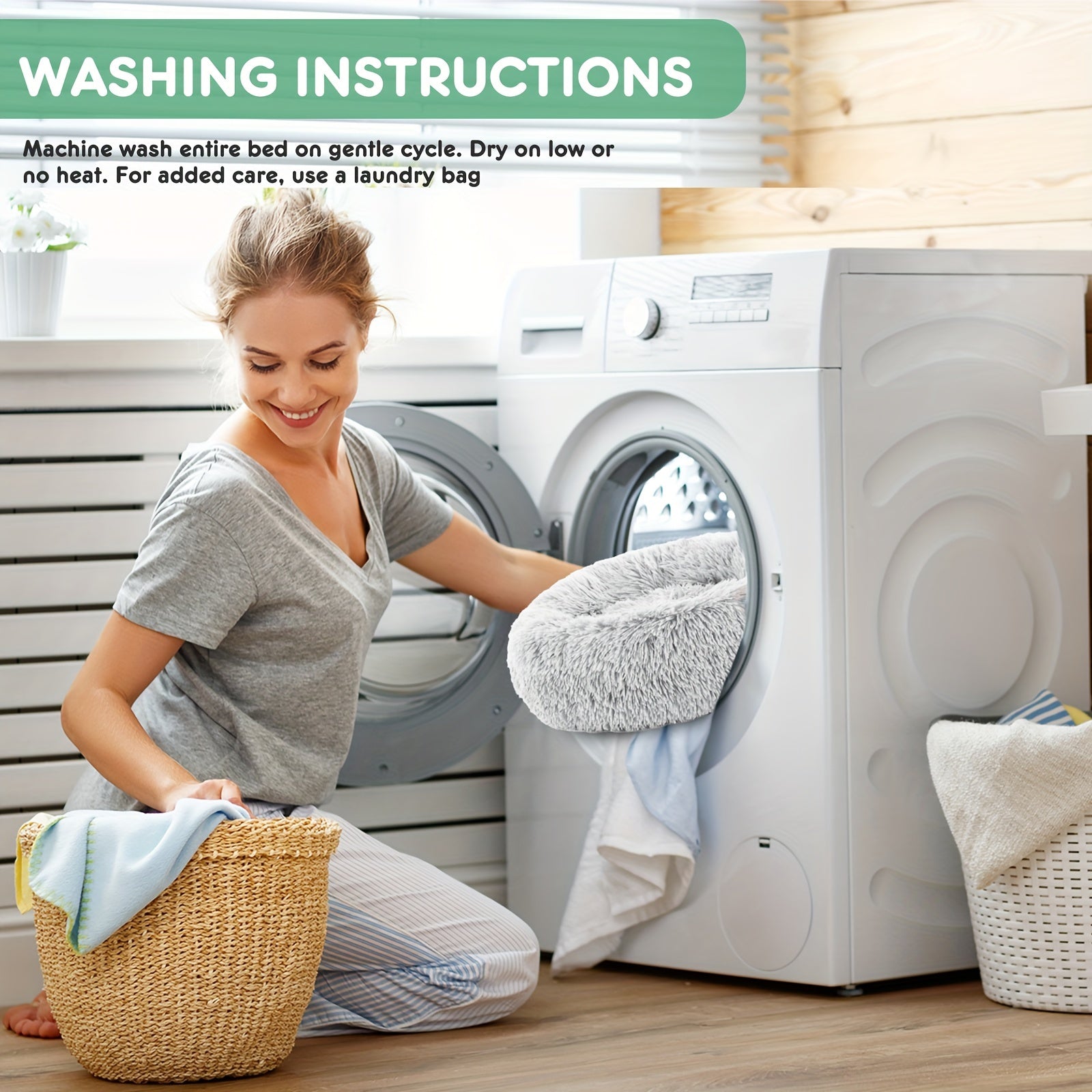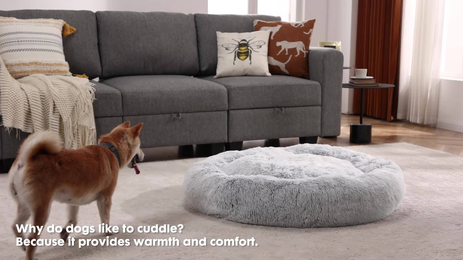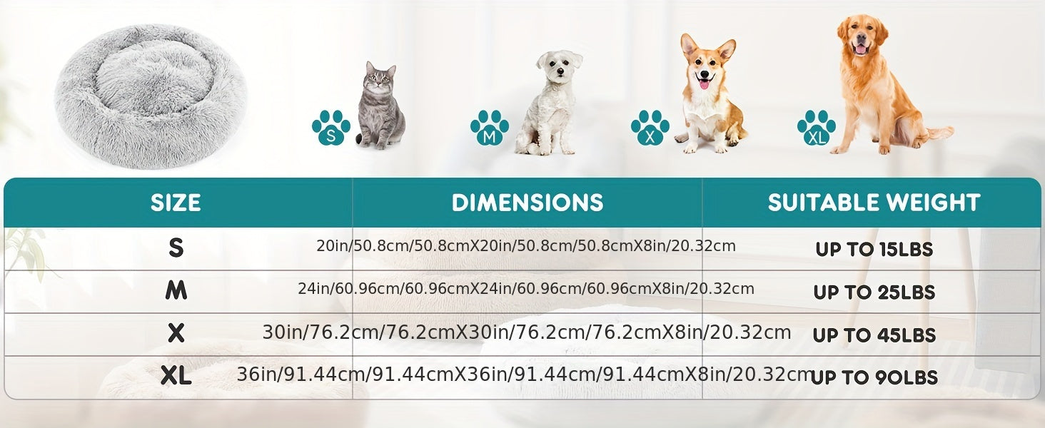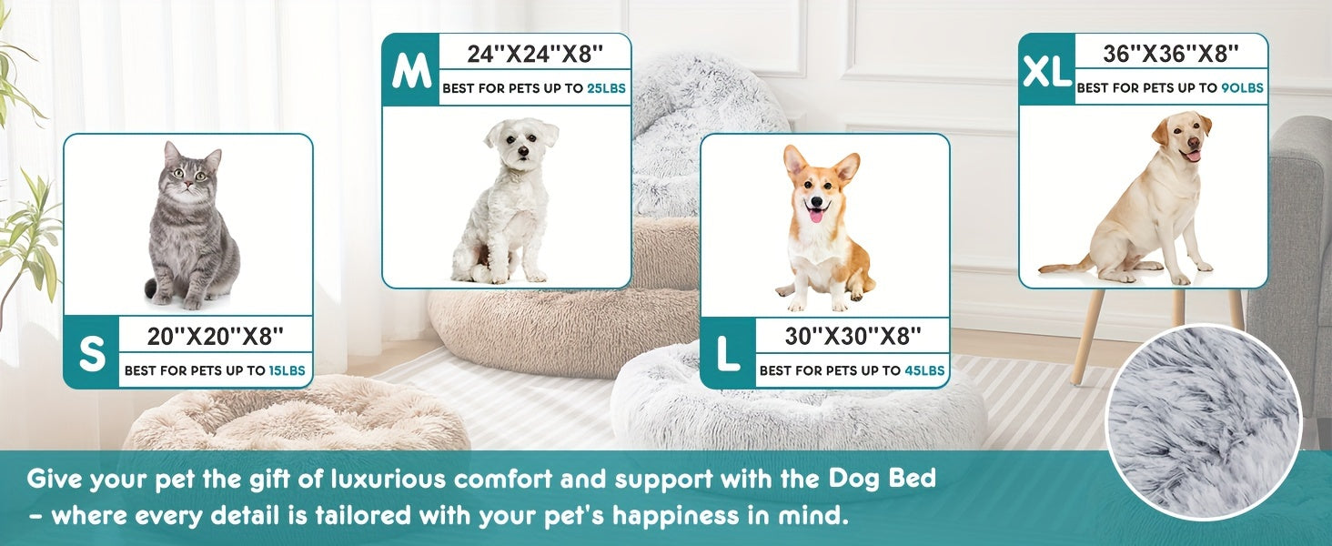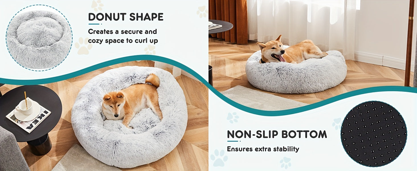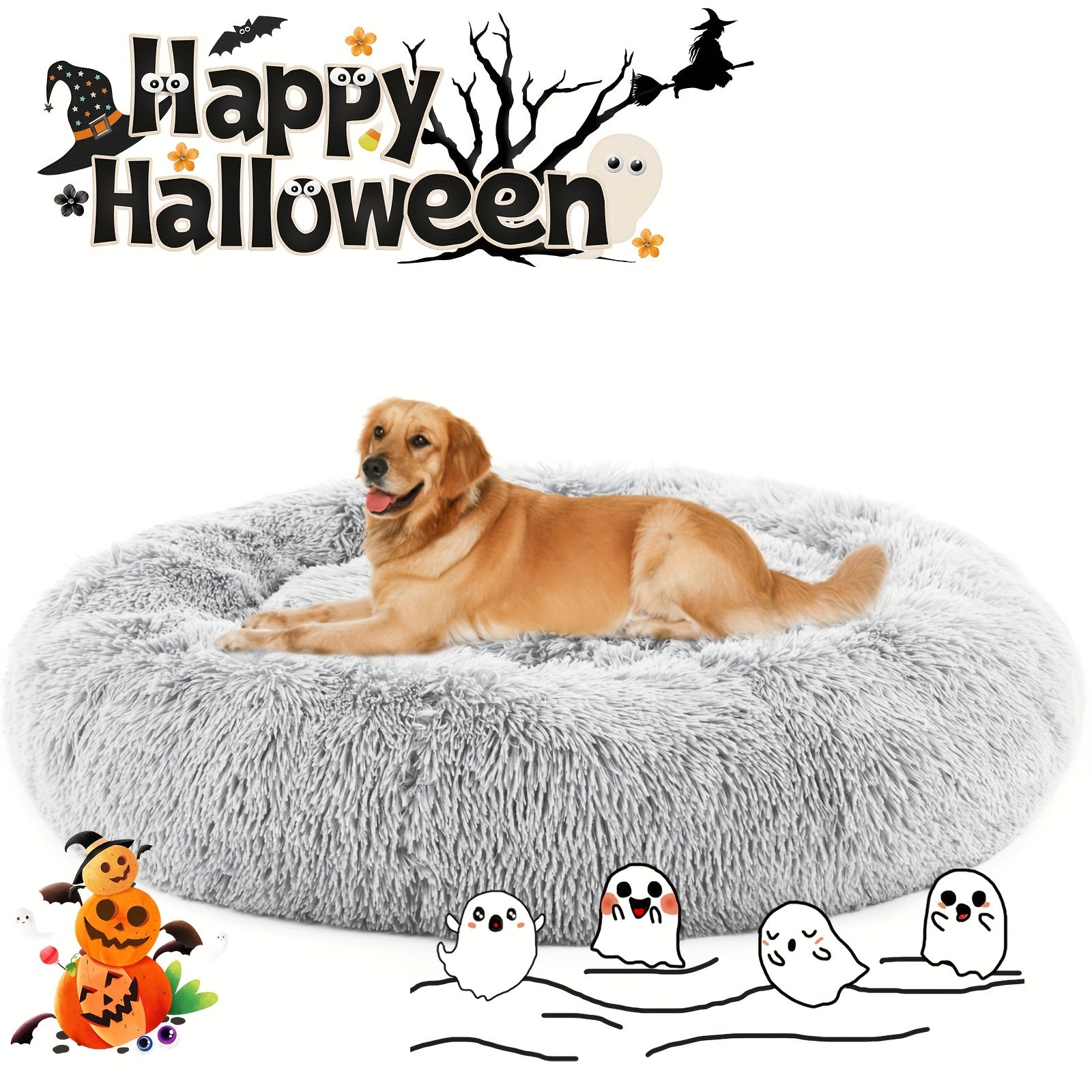 Fluffy Plush Calming Pet Bed For Dogs And Cats - Washable Anti-Slip Round Bed For Pets - Grey Color