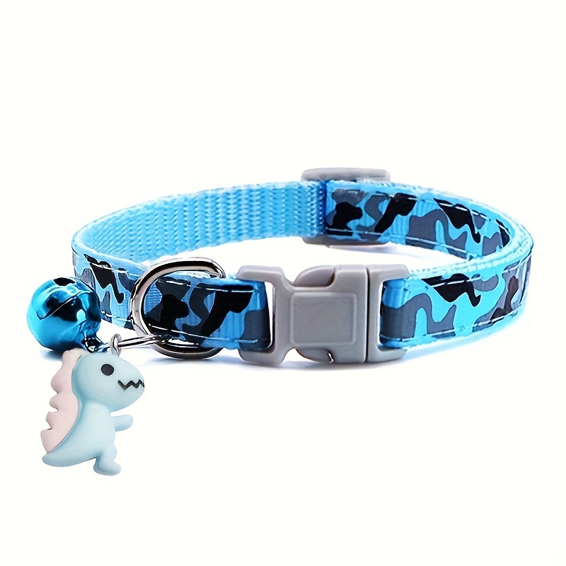 GEKTIMER Adjustable Camo Print Pet Collar with Bell and Cute Dinosaur Charm, Soft Padded Comfortable Design, Ideal Fashion Accessory for Cats, Kittens, and Small Dogs, Polyester Material in Cute Style