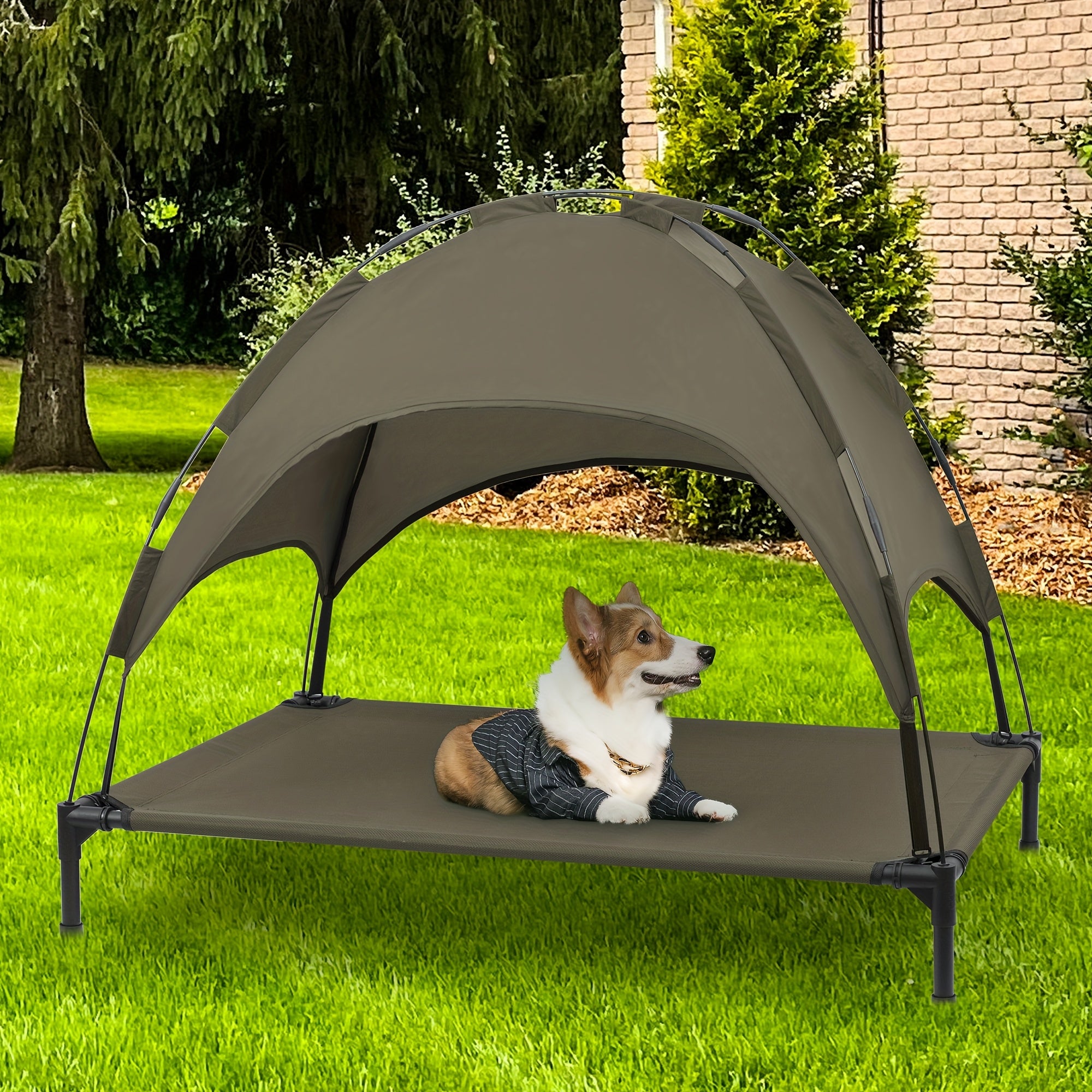 HEEYOO 42" Raised Dog Bed with Detachable Canopy - All-Weather Foldable Pet Cot for Indoor/Outdoor Use, Cooling Breathable Mesh & UV Protection, Windproof Sun-Resistant Elevated Bed for Dogs & Cats, Camping, Living Room, Bedr