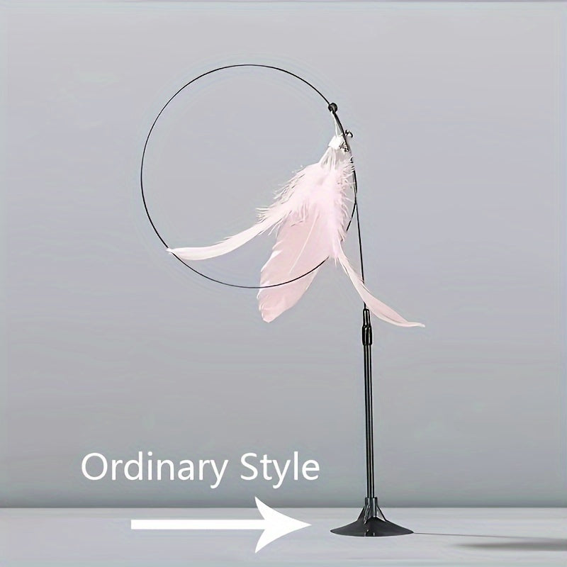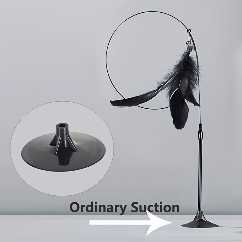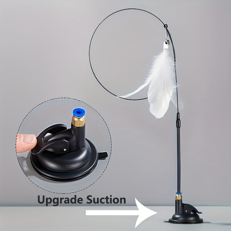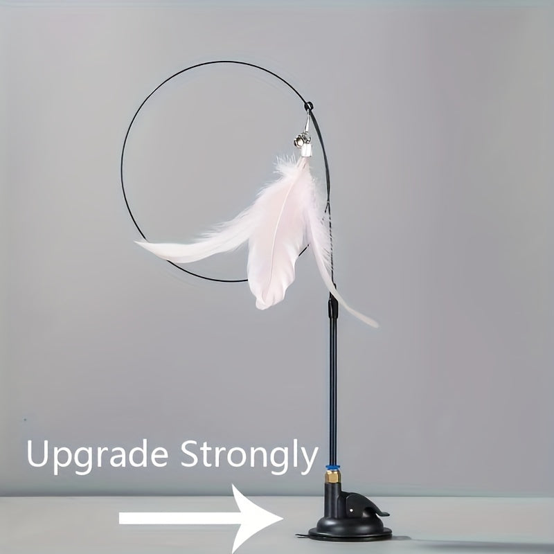 Interactive Cat Teaser Toy with Strong Suction Cup Base, Flexible Wire Rod, Self-Amusement Pet Stick for All Cats