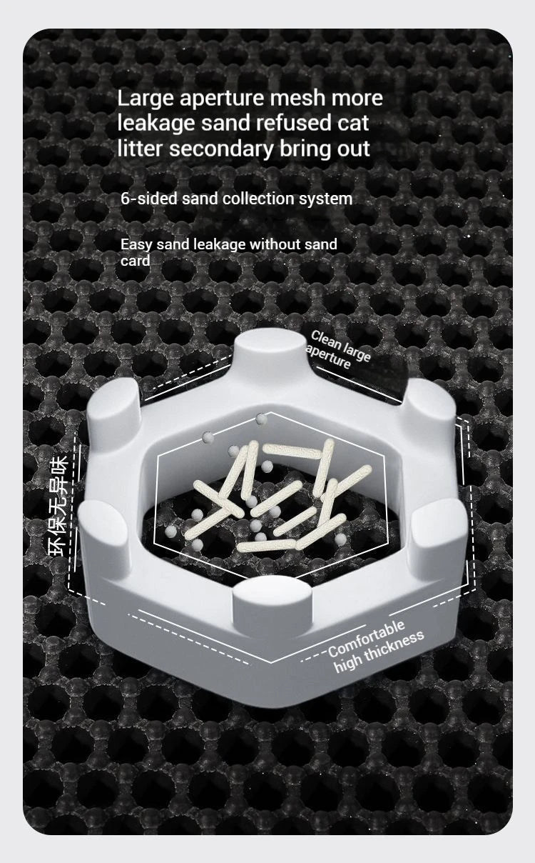 Washable cat litter pad: made of soft, durable and washable EVA material, which can easily remove dirt.