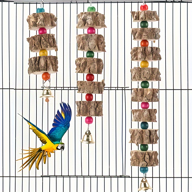 Natures Delight - Durable Wooden Parrot Toy with Melodic Bell and Vibrant Beads - Stimulating Chewing & Grinding Aid for Birds Health - Perfect Cage Accessory