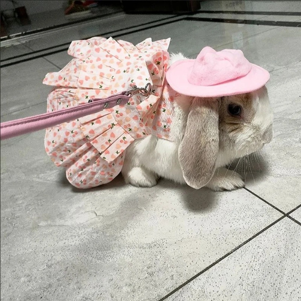 The set of rabbit harness and clothing is not only cute but also practical, designed for rabbits, hedgehogs, ferrets, and guinea pigs. The harness vest is designed to be secure and comfortable, making sure your small pet stays safe during walks and outdoor activities.