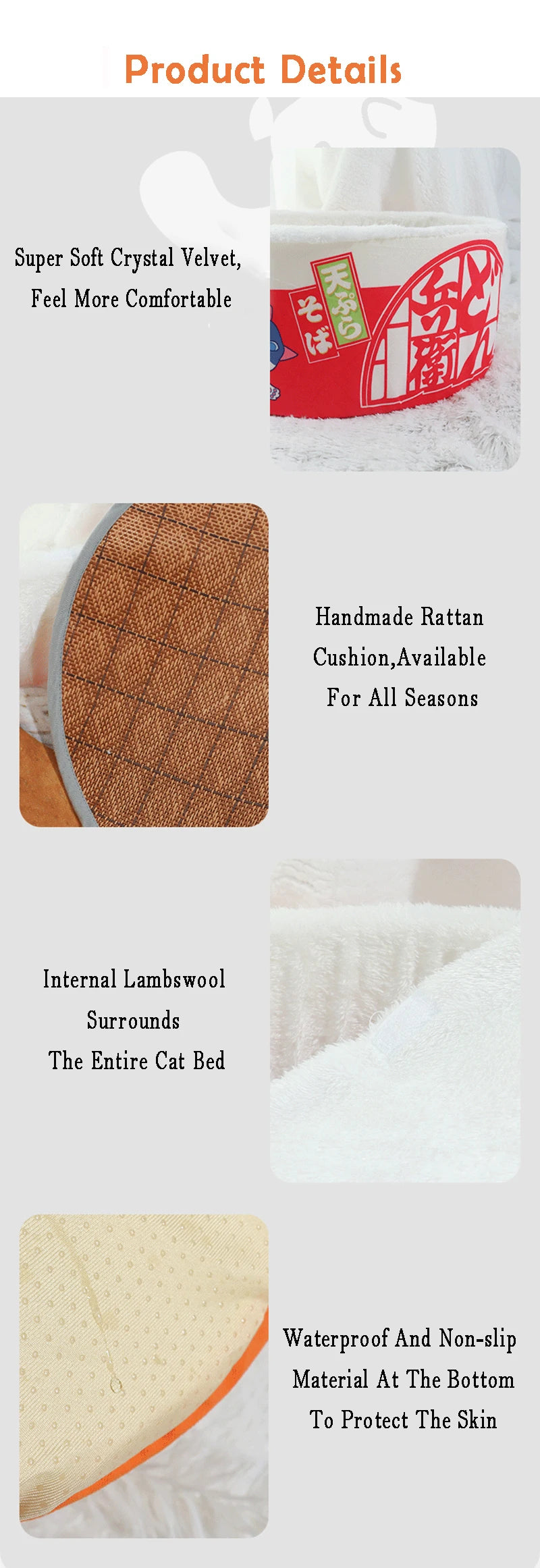 Noodle-Shaped Fleece-Lined Pet Bed Warm Breathable Detachable Round Cat Nest Flip Cover Four Seasons Universal Dog Kennel