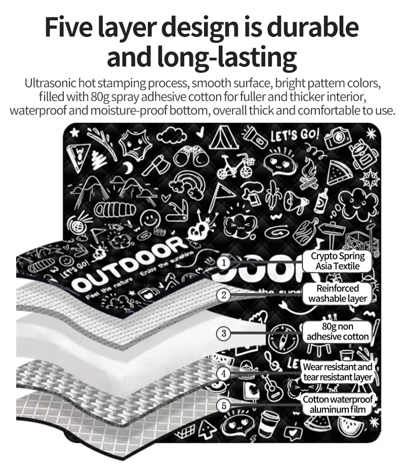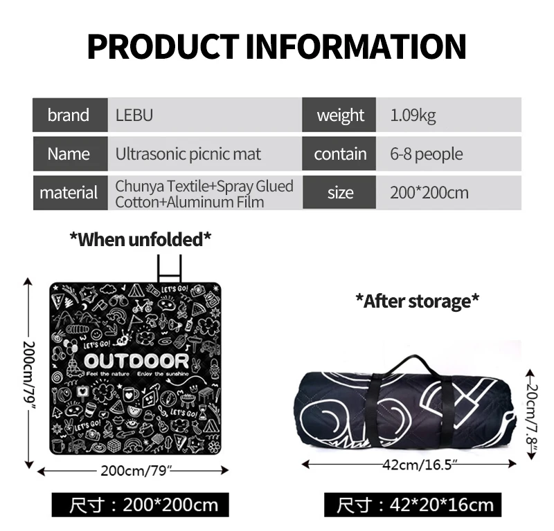 Outdoor Camping Portables Picnic Mat Lawn Mat Thickened Moisture-Proof Camping Mat Aluminum Film Base Machine Washable