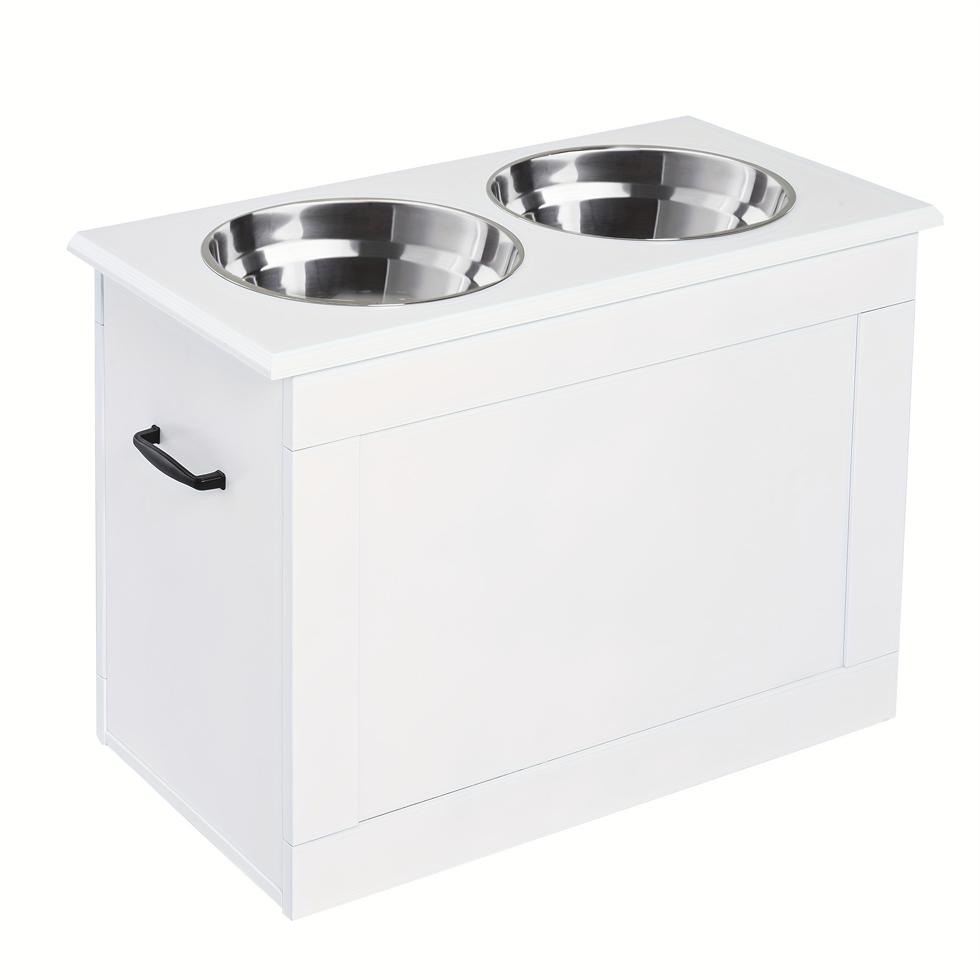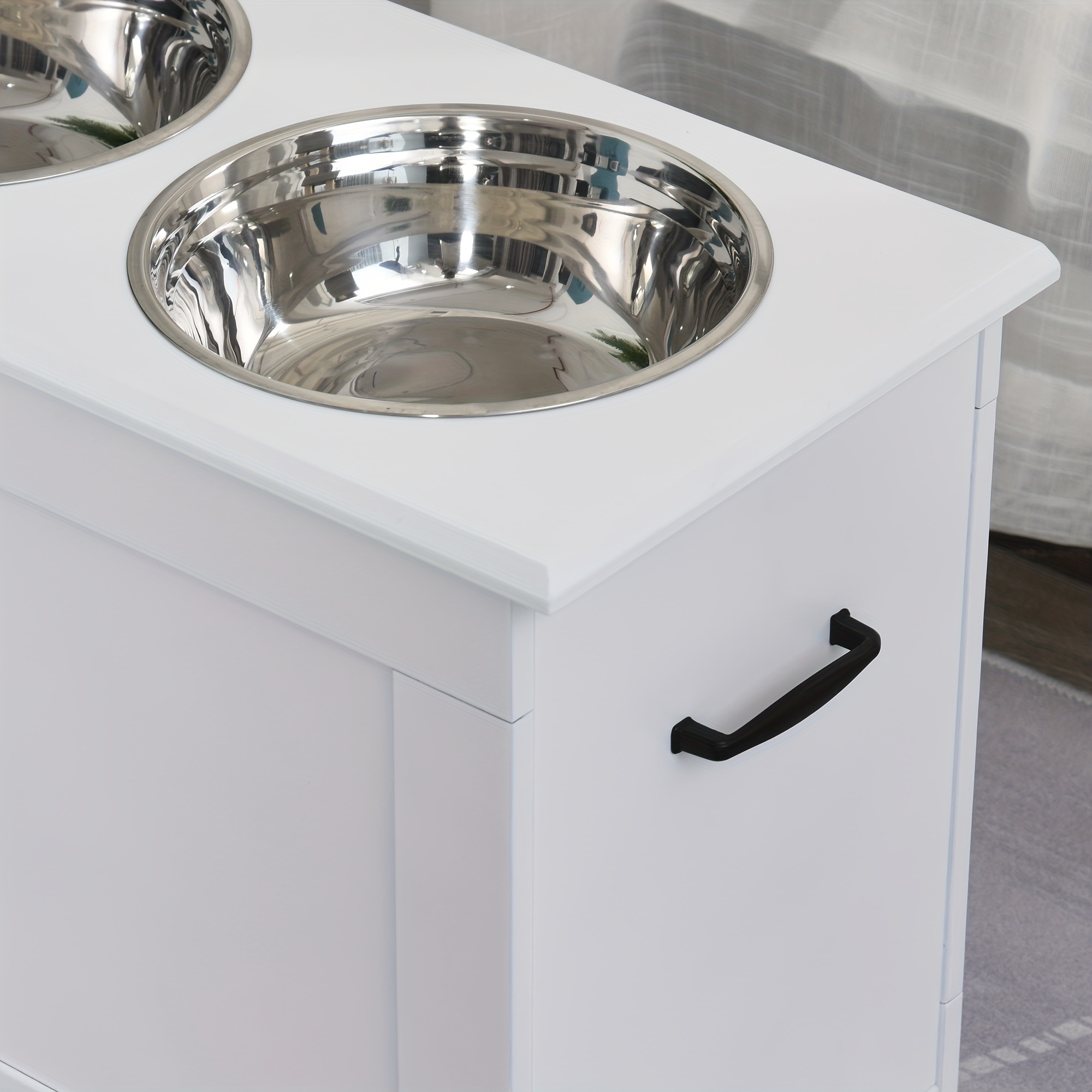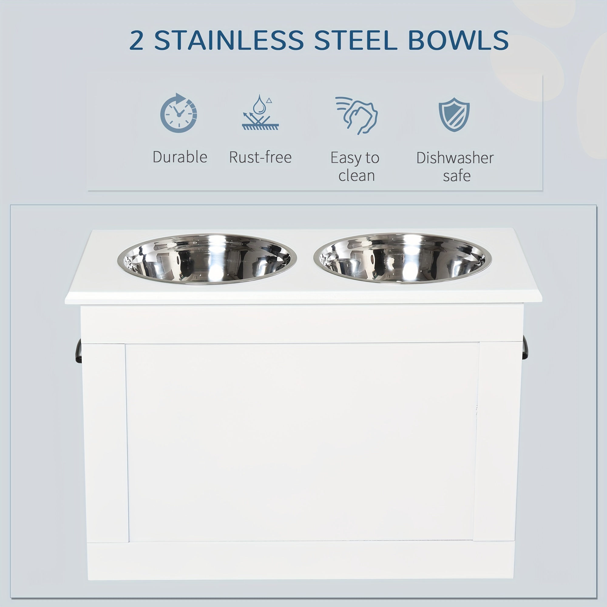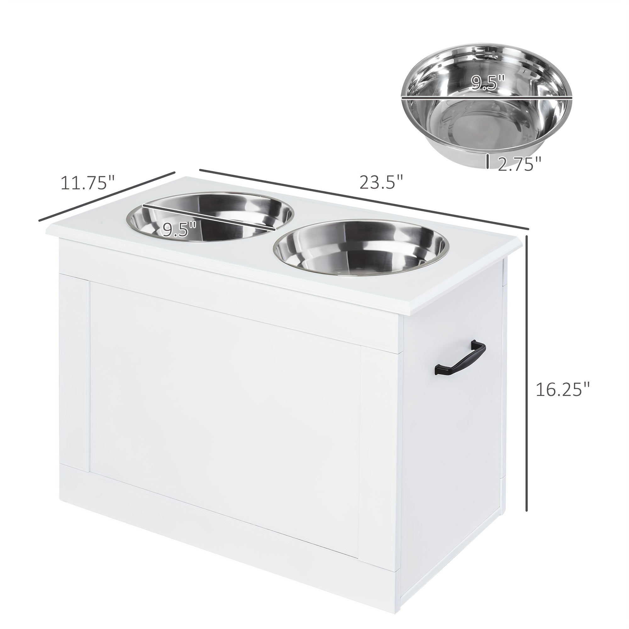 PawHut Raised Pet Feeding Storage Station With 2 Stainless Steel Bowls Base For Large Dogs And Other Large Pets, White