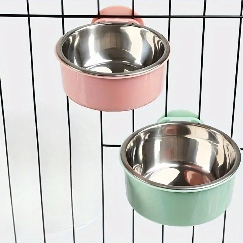 Pet Bowls Dog Feeders Removable Stainless Steel Hanging Pet Cage Bowl Food & Water Feeder for Cat Puppy Bird Guinea Pig
