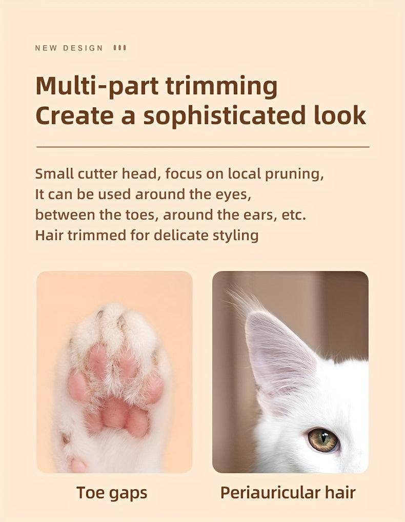 Pet Grooming Kit, Rechargeable Electric Paw Trimmer for Dogs and Cats, Dual-Use USB/Battery Powered, LED Light, Wide Blade, Quiet Operation, Ideal for Whisker, Foot & Eye Hair Removal