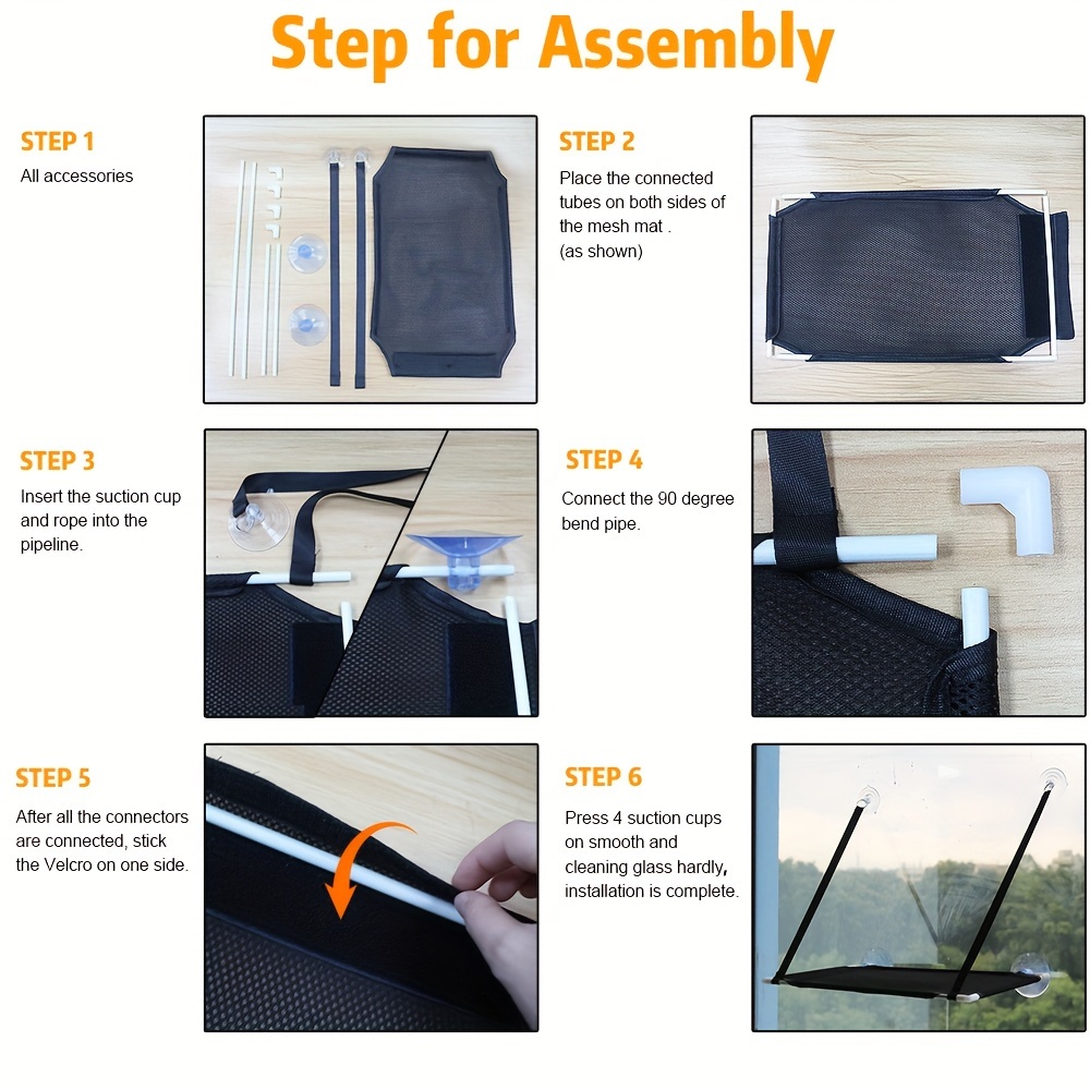 Polyester Cat Hammock for Window, Indoor Cat Perch, Resting Pet Bed, Mounted Cat Shelf, Space-Saving Window Seat for Large Cats, with Easy Assembly, for Kittens and Cats