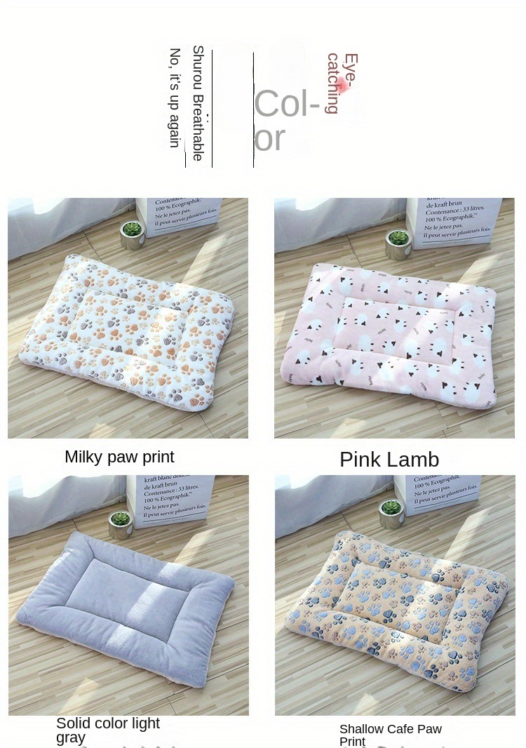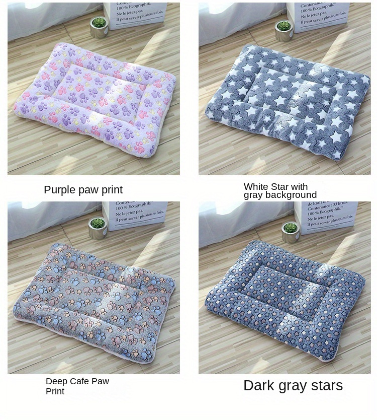 Reversible Plush Pet Bed for Cats & Small to Medium Dogs - Cozy Cartoon-Themed Flannel Mat, Machine Washable, Ideal for Winter Comfort, Plush Dog Bed