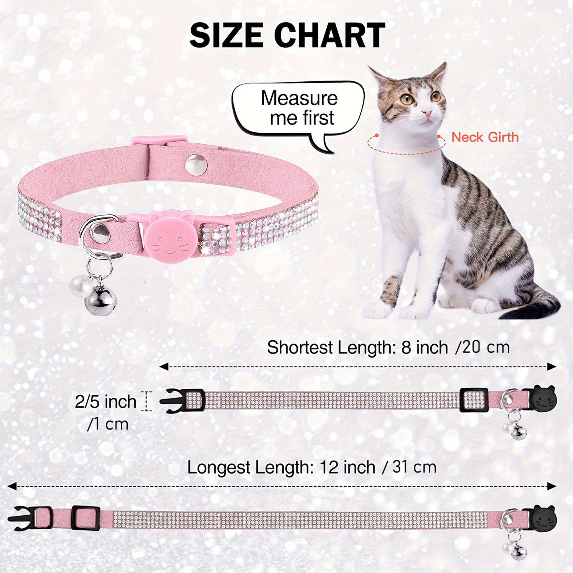 Comfortable and lightweight: The rhinestones bling cat collar is well made of soft velvet Faux Leather, flexible and comfy. The cat collar is designed to keep them for a long long time, all the rhinestones are studded and is not easy come off; will not easily scratch or irritate the skin of your cat, light enough and will not easily burden them