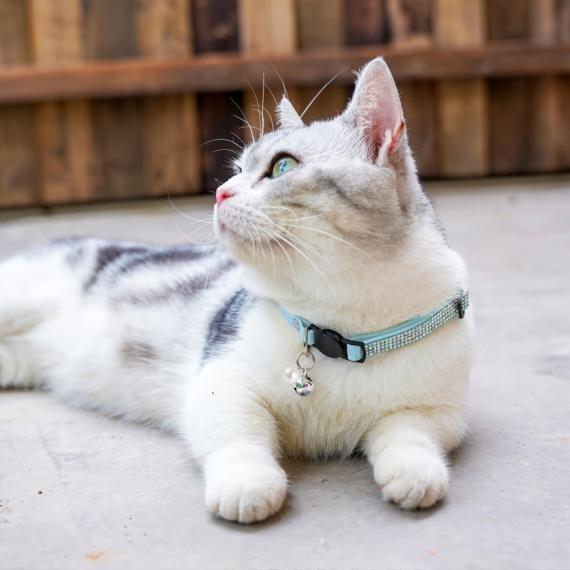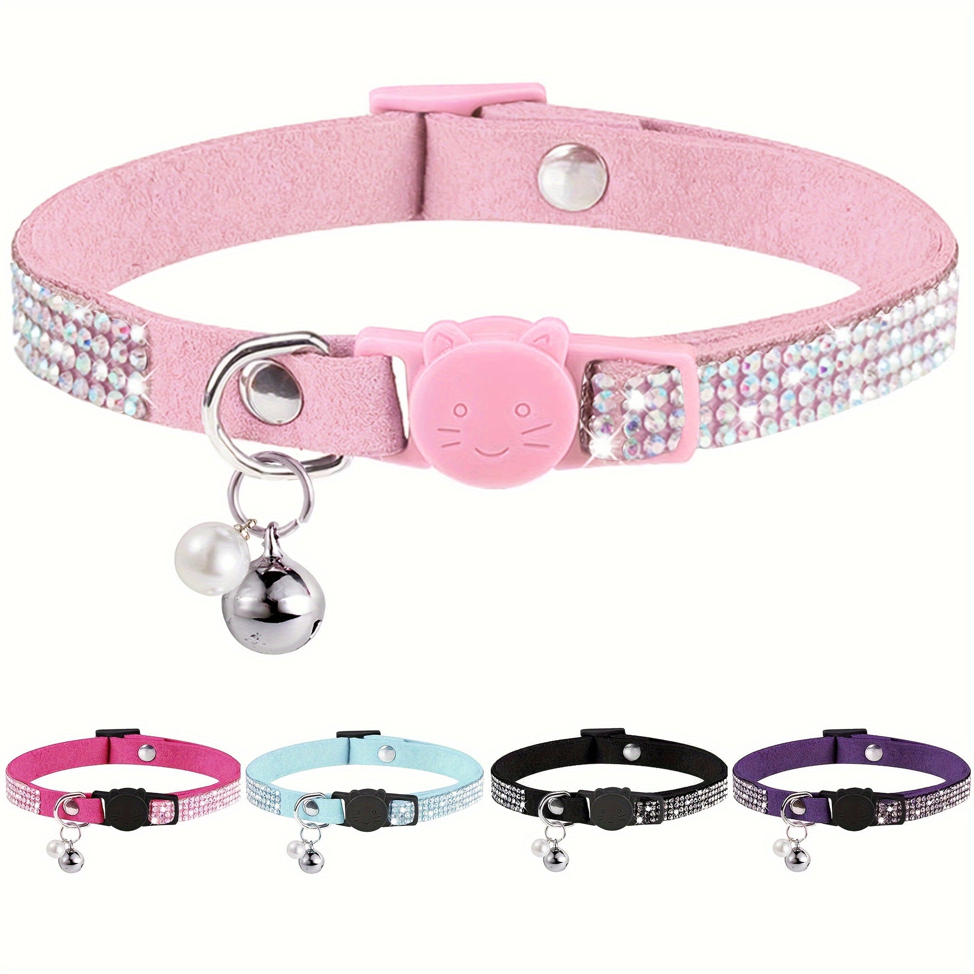 Rhinestone Cat Collar Breakaway with Bell, Precious Stone Cat Collar with Safety Buckle Quick Release for Individual Boy Small Kitten Pets Puppy, Cute Soft Female Male Cat Collars
