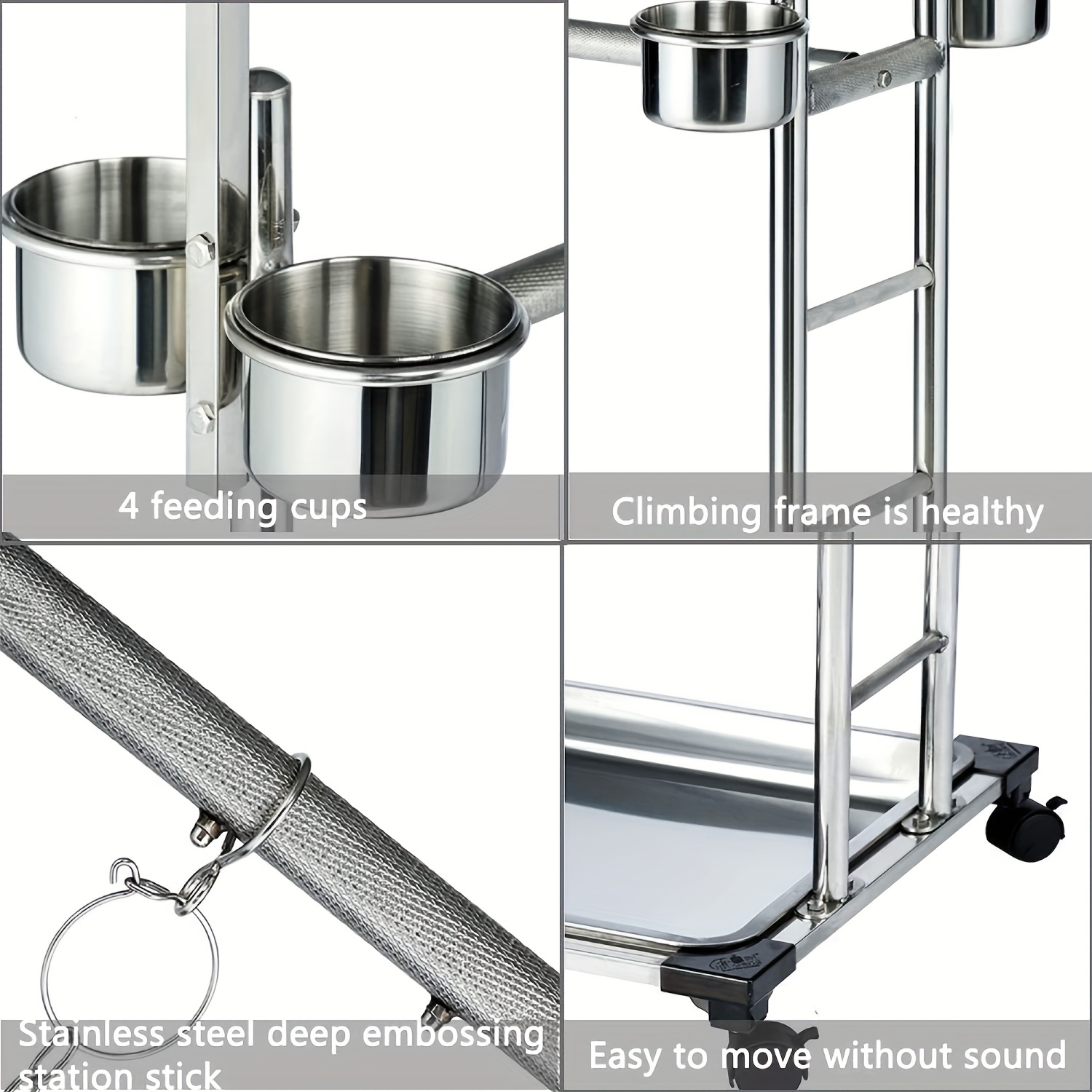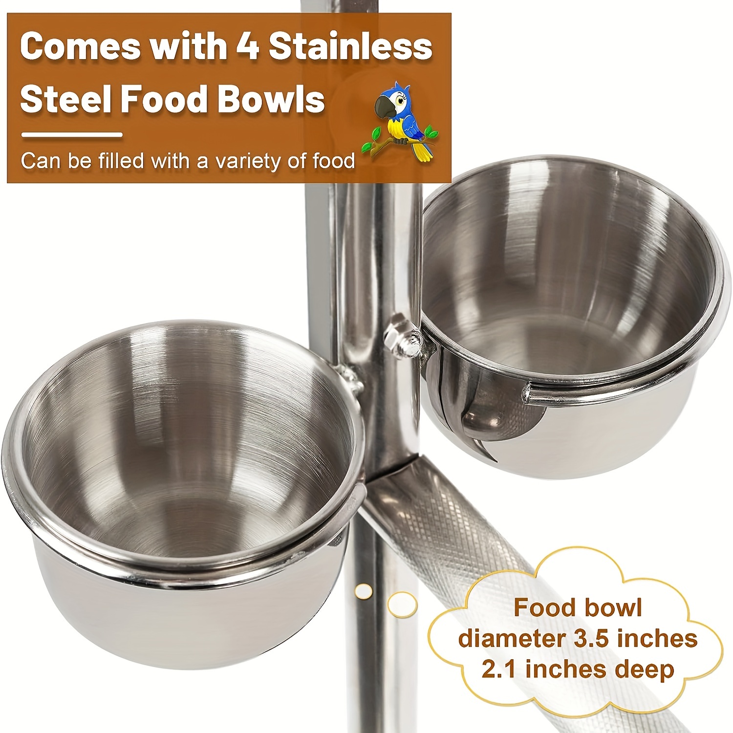 [Stainless Steel Bird Cage] 1pc Stainless Steel Foldable Bird Cage Stand - Parrot Stand with Gnawing Toys