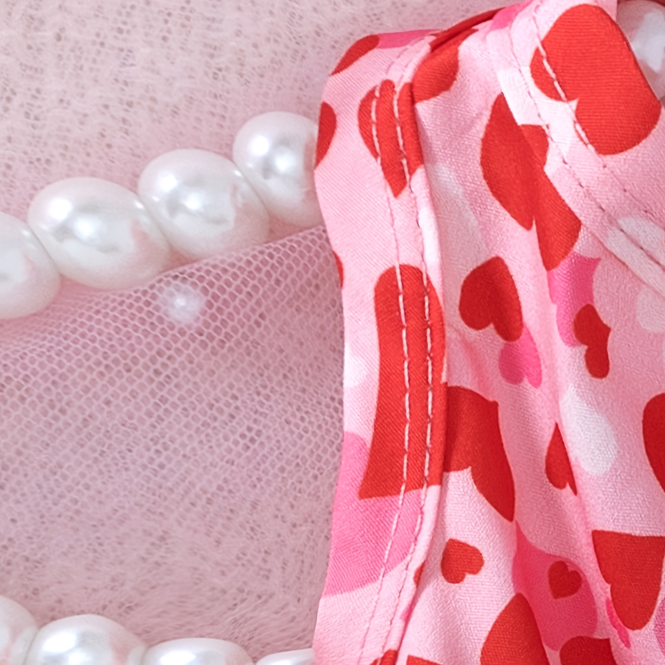 Valentine's Day Pink Heart Pattern Dog Dress with Bow, Cute Pullover Pet Apparel for Small & Mini Breeds, Woven Polyester 95% Spandex 5%, Suitable for Spring, Summer, Fall, Series, Skirt