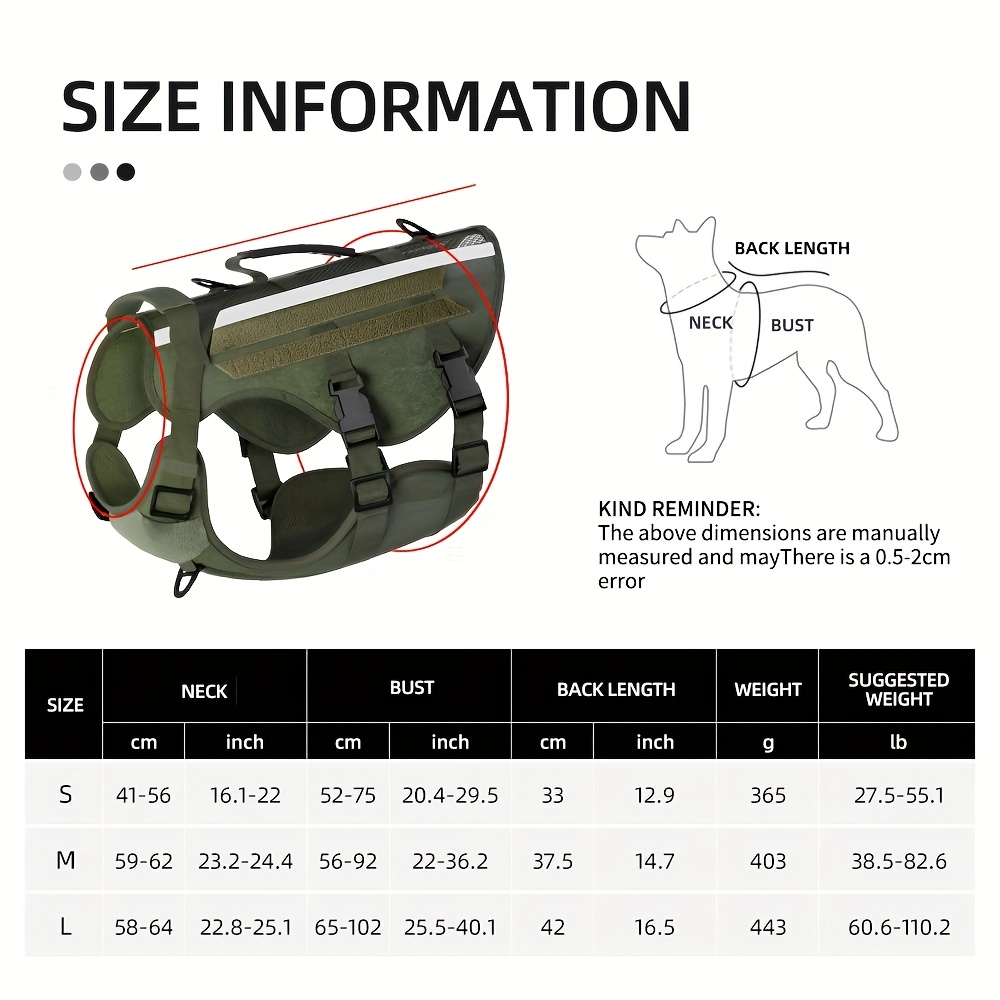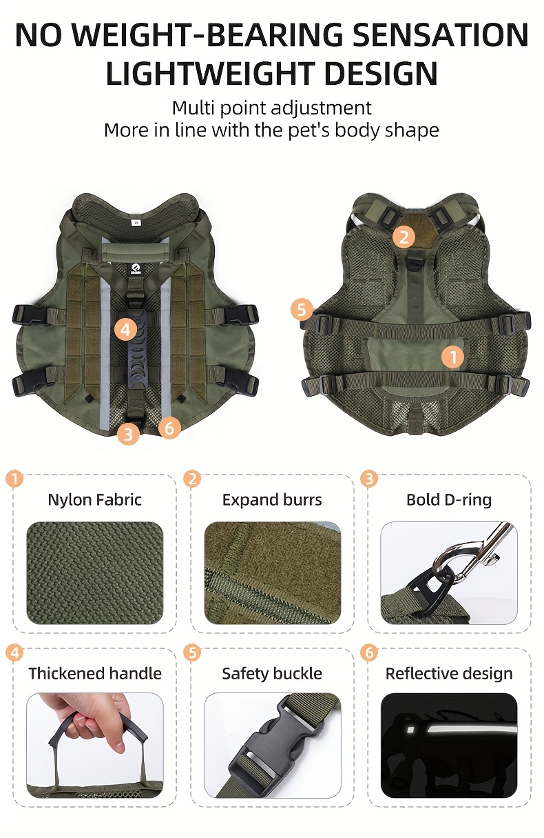 1pc Service Dog Harness, Reflective Dog Vest Harness, Adjustable Soft Oxford Pet Harness, Inner Layer Mesh, Breathable and comfortable, Easy to Control for Small Medium Large Dogs Random Buckle