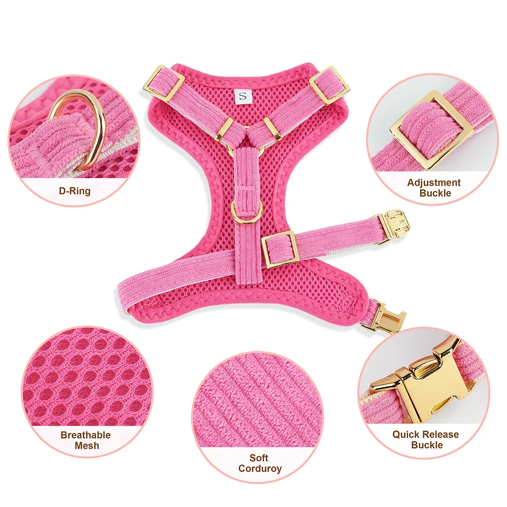 3PCS Dog Collar Harness Leash Set Breathable Dog Harnesses Soft Velvet Puppy Necklace With Bowknot Pet Walking Rope For Dogs Pug