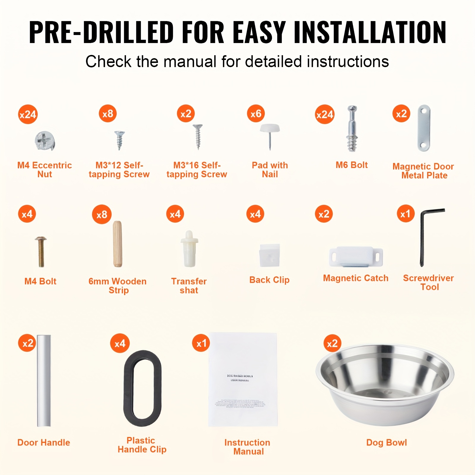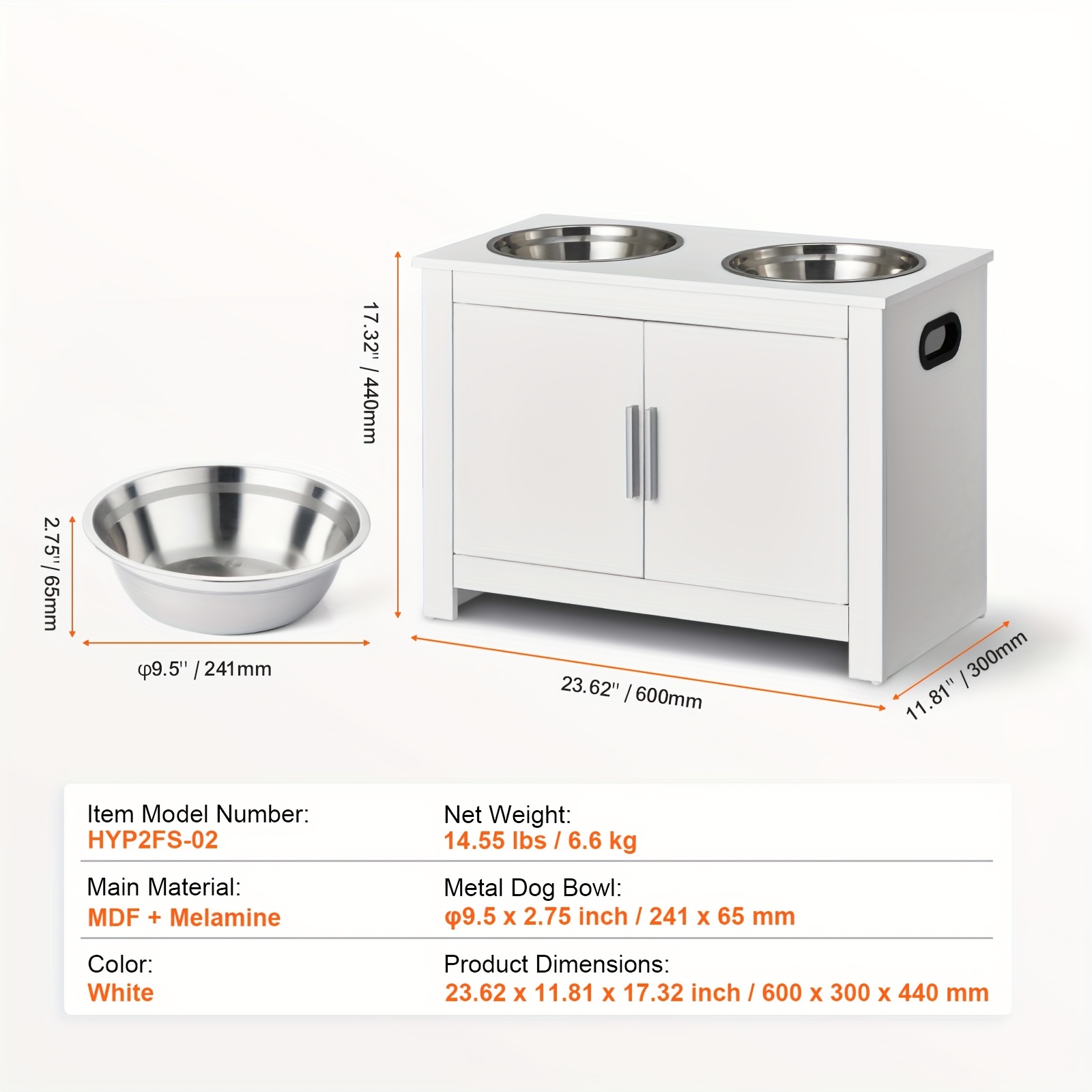 Happybuy Elevated Dog Feeding Station with 2 Stainless Steel Bowls & - Modern White Wood Pet Dispenser, Heavy-Duty Elevated /Water Dispenser for Large Breeds, Space-Saving Design for Home, Easy ssembly, Pet Feeding Station, R
