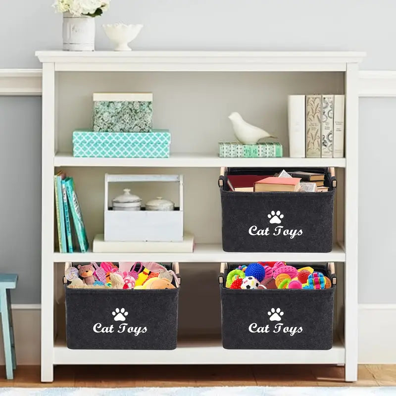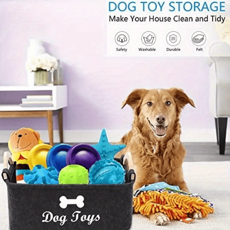 1 Dark Dog Toy Box, Storage Basket Box Storage Box-felt Pet Toy Box and Dog Toy Box Storage Basket Box Storage Box-very Suitable for Organizing Pet Toys, Blankets, Belts and Food-black Dog Toys.