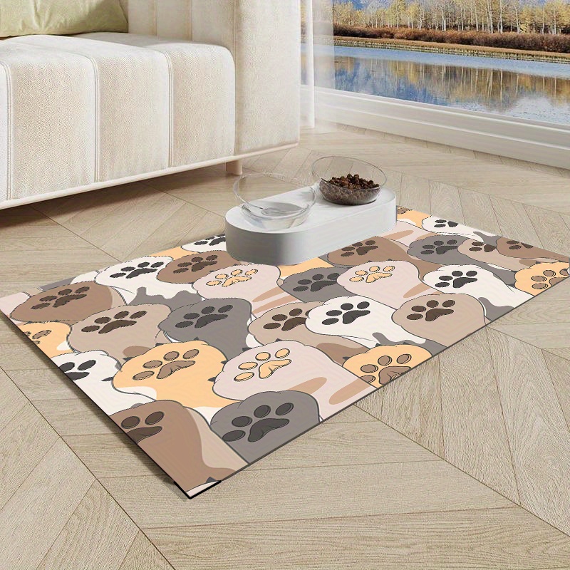 1pc Cartoon Paw Pattern Pet Feeding Mat Absorbent Quick-Drying Pet Bowl Mat / Anti-Spill Pet Meal Mat Multi-Purpose Reusable Drying Mat