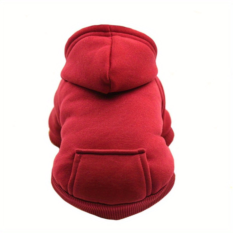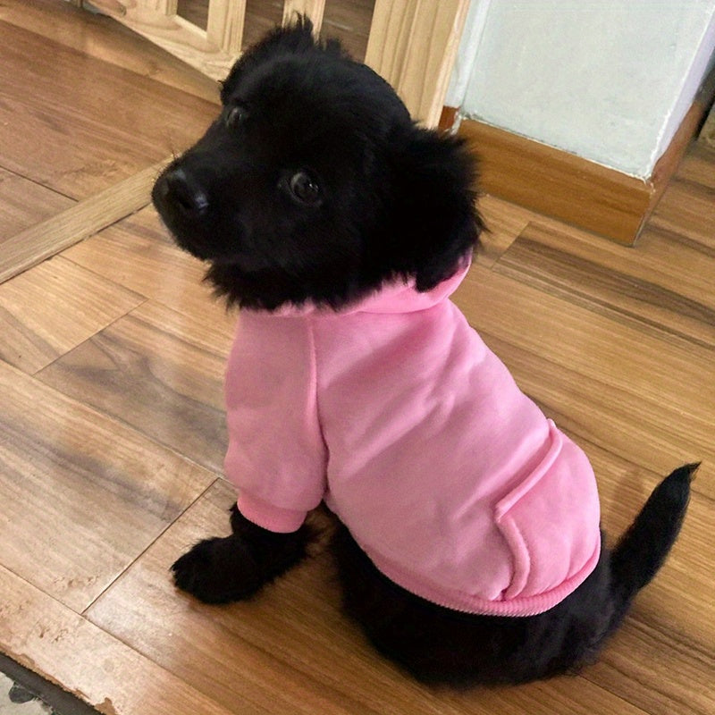 A cozy pet hoodie made of high-quality polyester, featuring a solid color hooded design and a convenient back pocket for small items. Perfect for keeping your furry friends warm and stylish during the autumn and winter seasons, whether indoors or outdoors.