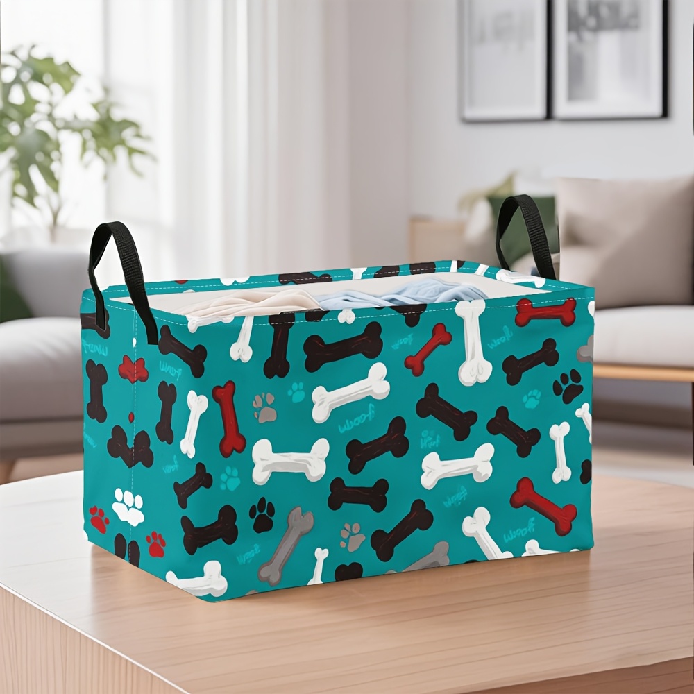 1pc Extra Large Teal Dog Paw Bones Pattern Storage Basket, Foldable Oxford Bin with Metal Frame, Ideal for Dirty Clothes & Fragrance Organization, Cologne Collection Display, Dresser Top Arrangement, Polyester Material, Pet A