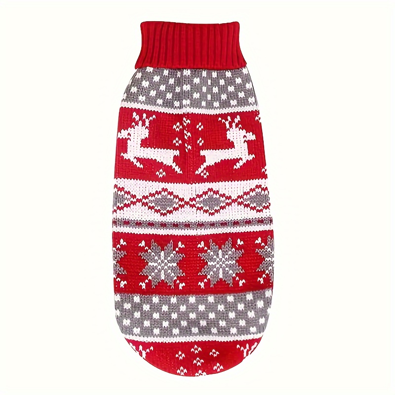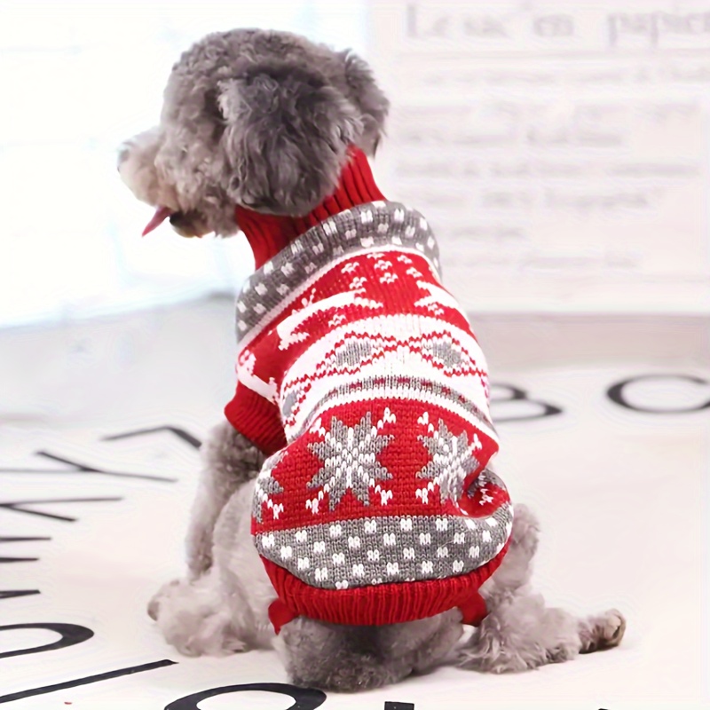 1pc Reindeer Snowflake Christmas Dog Sweater - Soft, Warm, Cozy Acrylic Pullover for Small Breed Pets - Machine Washable, All-Season Comfort, And Easy Care for Winter Knitwear