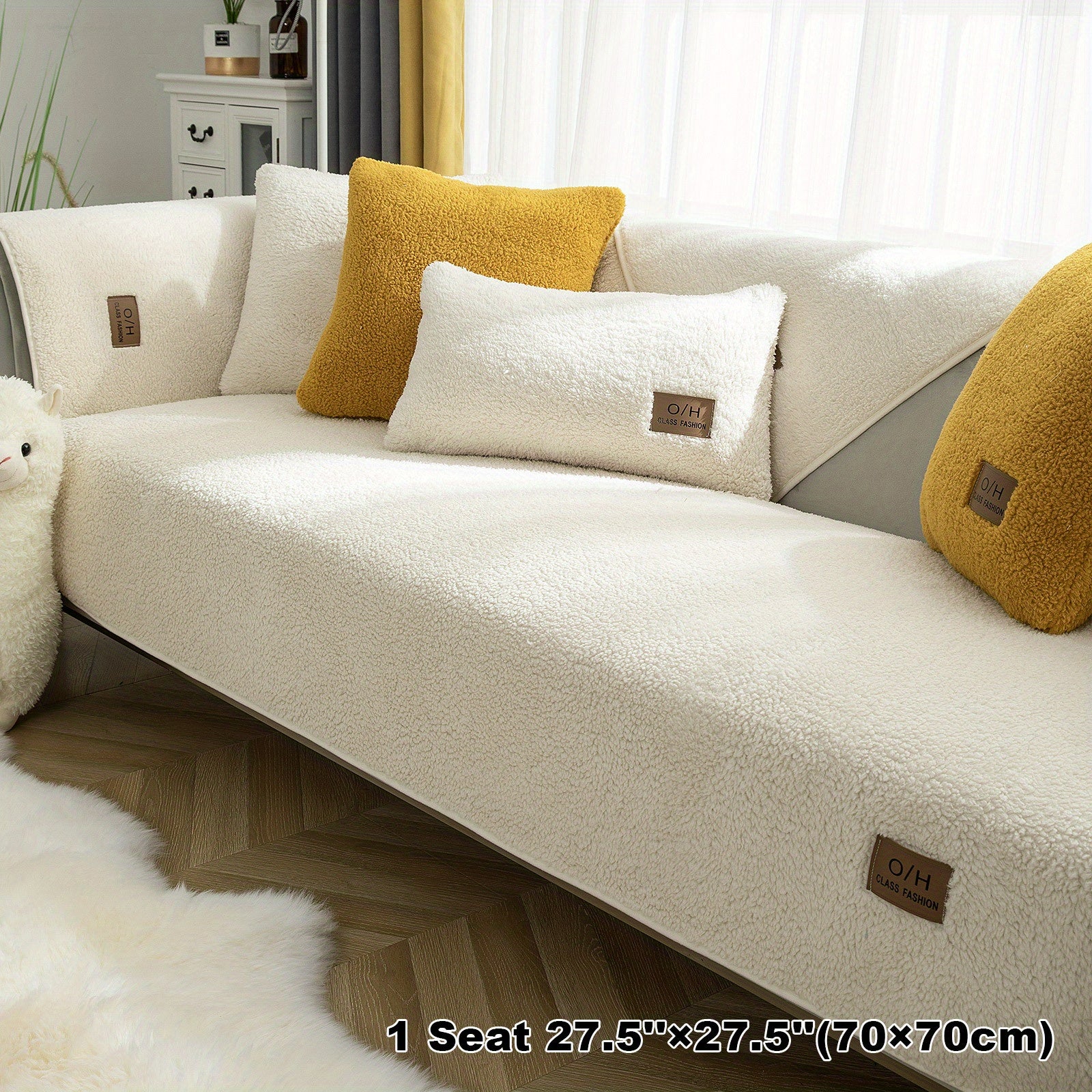 1pc Thickened Sherpa Velvet Sofa Slipcover, Pets Dog Friendly, Sherpa Fleece Sofa Couch Cover, Furniture Protector Fuzzy Non Slip Sofa Slipcover, For Bedroom Office Living Room Decor