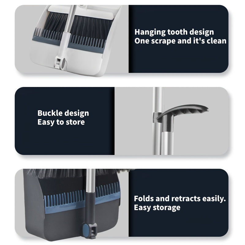 This 2-piece 3-in-1 rotatable and foldable magnetic broom and dustpan set is the ultimate cleaning tool for your home. Featuring an enlarged, thickened broom with soft, non-stick bristles, it effortlessly picks up dust, dirt, and pet hair without leaving a trace. Its innovative magnetic design allows easy attachment and removal of the dustpan, while the broom is lightweight and adjustable for comfortable use. Available in blue, orange, and white, it’s perfect for living rooms, bedrooms, and pet-