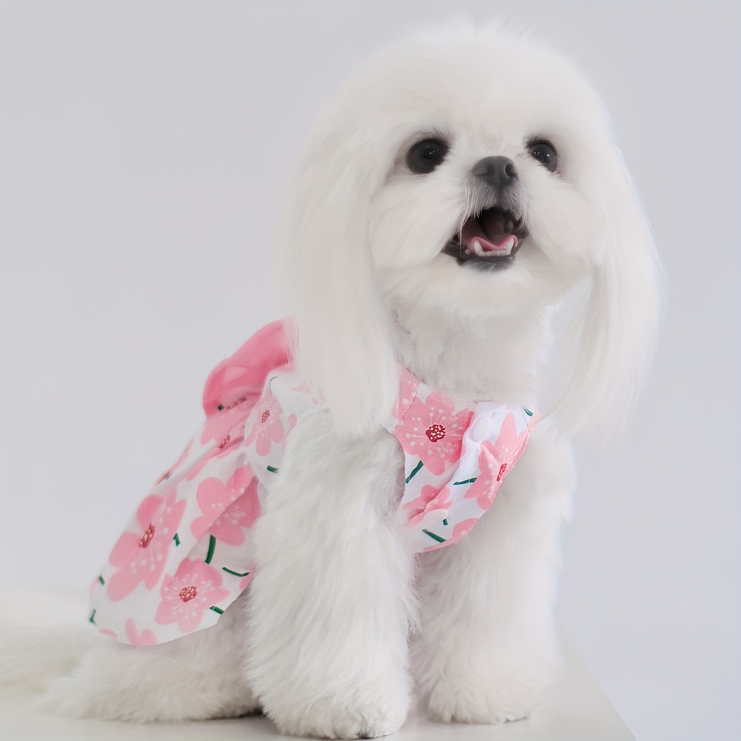 5pcs Floral Princess Dress Set for Small Dogs & Cats - Breathable Summer Pet Apparel with Bowknot, Ideal for Yorkies, Bulldogs, Bichons, Pomeranians, Chihuahuas, for Autumn, Spring
