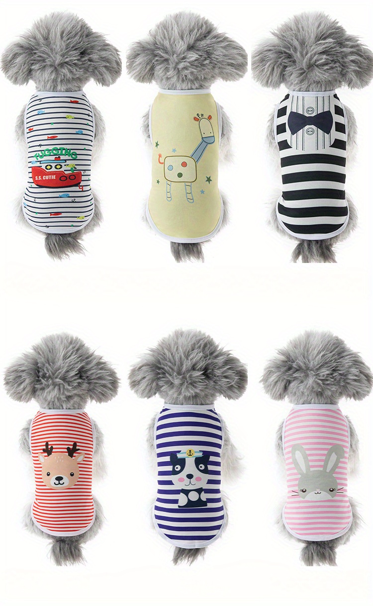 6pcs Adorable Cartoon Character Print Pet Apparel - Shirts for Small and Medium Dogs and Cats with Breathable Striped Vest T-Shirt Design, Comfortable Wear for Everyday Use